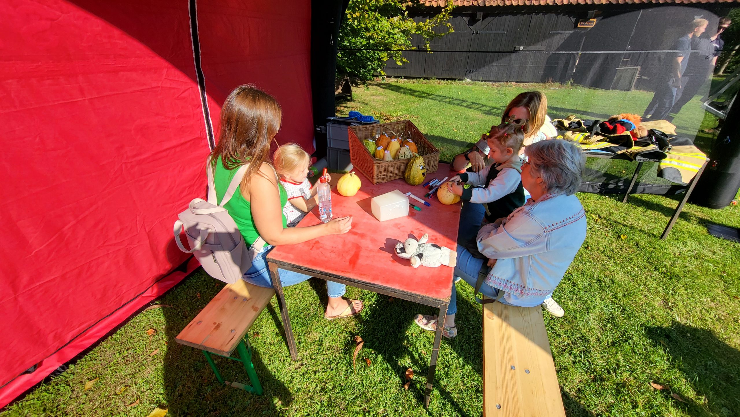 Unter dem neuen, aufblasbaren Einsatzzelt der Feuerwehr Stuhr hatte die Brandschutzerziehung ihren Infostand aufgebaut. Hier hatten die Besucher die Möglichkeit, die persönliche Schutzausrüstung wie Helm, Jacke und Handschuhe mal näher anzusehen. Die kleinen Gäste konnten sich hier auch künstlerisch betätigen. Wie in den Jahren zuvor konnten sie Zierkürbisse bemalen. An diesem Nachmittag entstanden viele tolle Kunstwerke.