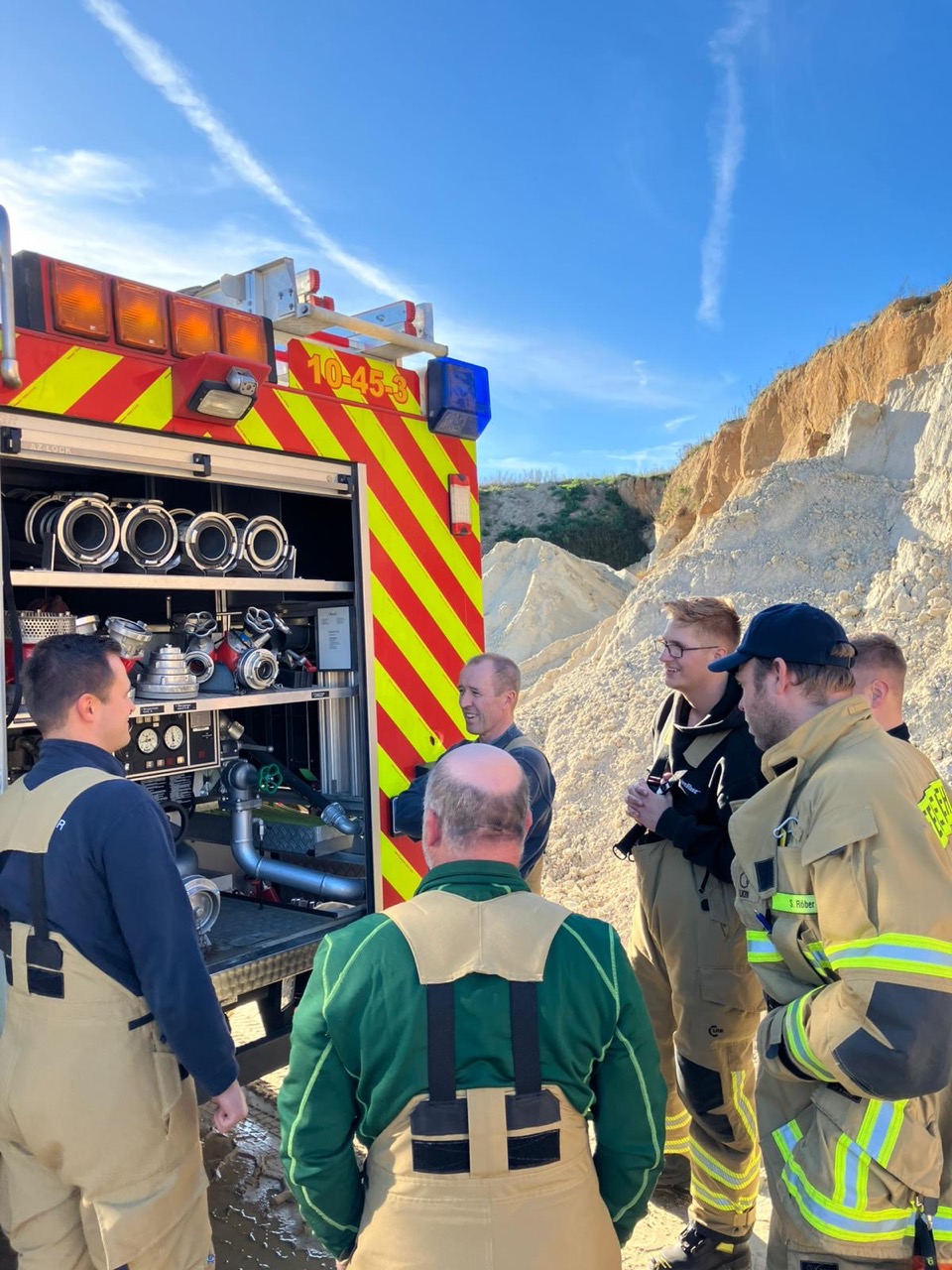 Besonders interessant war auch das LF 10 der Feuerwehr Groß Mackenstedt, das voraussichtlich Ende des Jahres nach Heiligenrode wechseln wird. Ein Kamerad aus Groß Mackenstedt gab eine umfassende Einweisung in Fahrzeug und Pumpe, bevor die Heiligenroder Kameradinnen und Kameraden das Fahrverhalten des Fahrzeugs selbst erproben konnten.