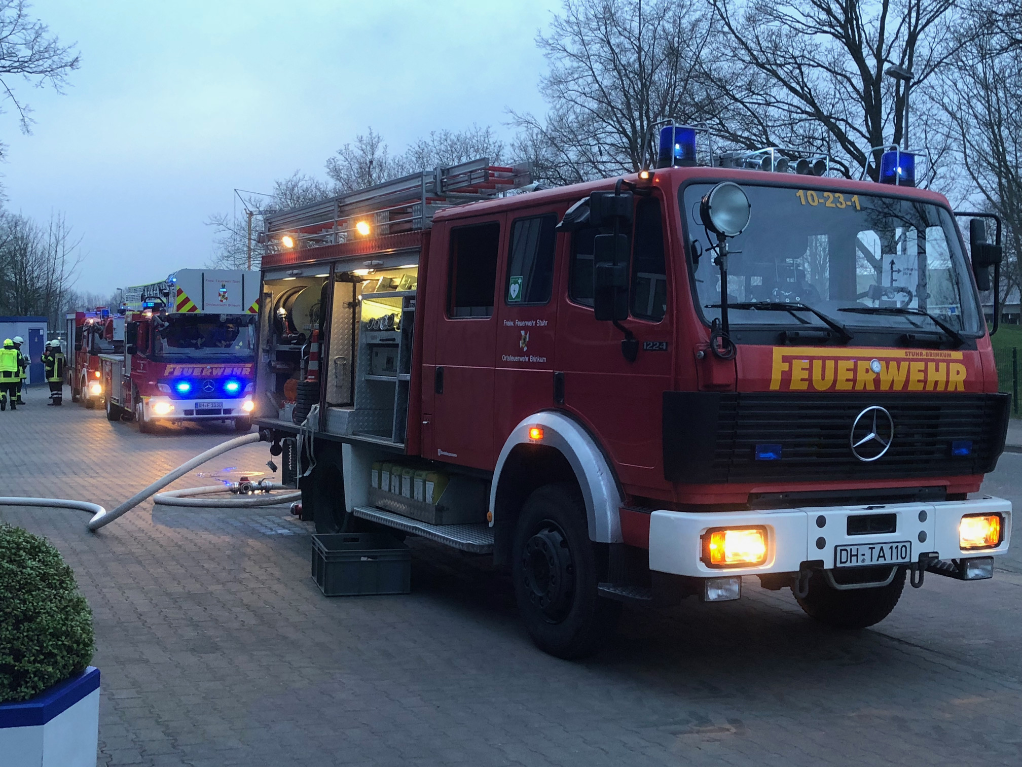 Im Rahmen eines Zugdienstes der Ortsfeuerwehr Brinkum, wurde bei der Firma Eggers Fahrzeugbau eine Einsatzübung durchgeführt. Die Ortsfeuerwehr wurde per Funk mit dem Stichwort „ausgelöste Brandmeldeanlage“ alarmiert. Das zuerst eintreffende Tanklöschfahrzeug stellte im Rahmen der Erkundung eine Verrauchung in einer Halle fest. Anwesende Mitarbeiter berichteten von zwei vermissten Kollegen. Daraufhin wurden umgehend Atemschutztrupps zur Menschenrettung und später zur Brandbekämpfung eingesetzt. Parallel wurde eine Wasserversorgung zum Tanklöschfahrzeug und der Drehleiter aufgebaut. Nach zwei Stunden war die Einsatzübung beendet.