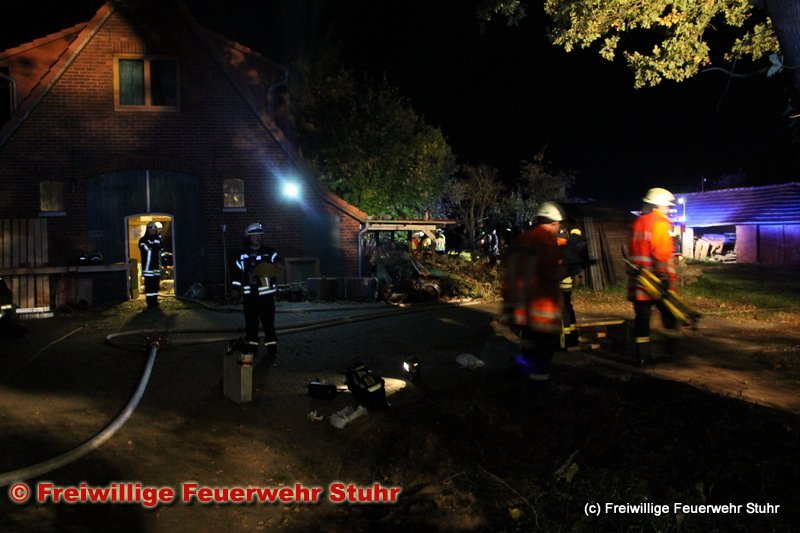 Heiligenrode (mt) – Einige Kräfte waren in Brinkum-Nord mit Nachlöscharbeiten beschäftigt, andere waren gerade wieder nach Hause zurückgekehrt, als der Leitstelle in Diepholz gegen 4:10 ein weiterer Gebäudebrand in Bürstel gemeldet wurde. Die Feuerwehren Heiligenrode, Fahrenhorst und die bisher nicht eingesetzte Ortsfeuerwehr Groß Mackenstedt rückten aus. In der Straße „Bürsteler Richtweg“ brannte es in einem Zimmer im 1.OG. Die Bewohner, drei Personen und zwei Hunde, hatten das Gebäude bei Eintreffen der Feuerwehr bereits verlassen. In dem Zimmer, in dem das Feuer aus ungeklärter Ursache ausgebrochen war, befand sich niemand. Die Feuerwehr nahm einen Löschangriff von außen über eine Steckleiter vor, während weitere Kameraden innen sicherstellten, dass das Feuer aus dem geschlossenen Raum nicht auf den Rest des Hauses übergreifen konnte. Die Bewohner wurden wegen möglicher Rauchgasinhalation in einem Rettungswagen untersucht. Sie konnten anschließend aber wieder in ihr Haus zurückkehren.