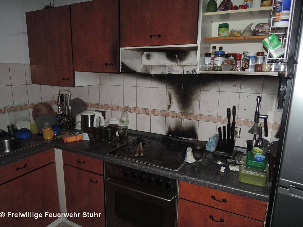 (ct) Gestern am späten Abend um kurz vor 23 Uhr wurde die Feuerwehr Stuhr über Sirene und Meldeempfänger zu einem Küchenbrand alarmiert. In einem Haus in der Straße Am Fesenfeld in Stuhr hat beim Kochen die Dunstabzugshaube angefangen zu brennen. Beim Eintreffen der Feuerwehr war bereits nach Löschversuchen der Bewohner kein offenes Feuer mehr zu sehen. Durch die Feuerwehr wurde die Dunstabzugshaube demontiert und anschließend mit einem Hochdrucklüfter das Haus entraucht. Sieben Bewohner, unter denen auch zwei Babys waren, wurden vor Ort durch den Rettungsdienst und den Notarzt untersucht. Die Erwachsenen hatte eine leichte Rauchgasvergiftung erlitten. Die Feuerwehr war mit 15 Einsatzkräften und zwei Fahrzeugen vor Ort und konnte nach einer knappen Stunde zum Standort zurückkehren.
