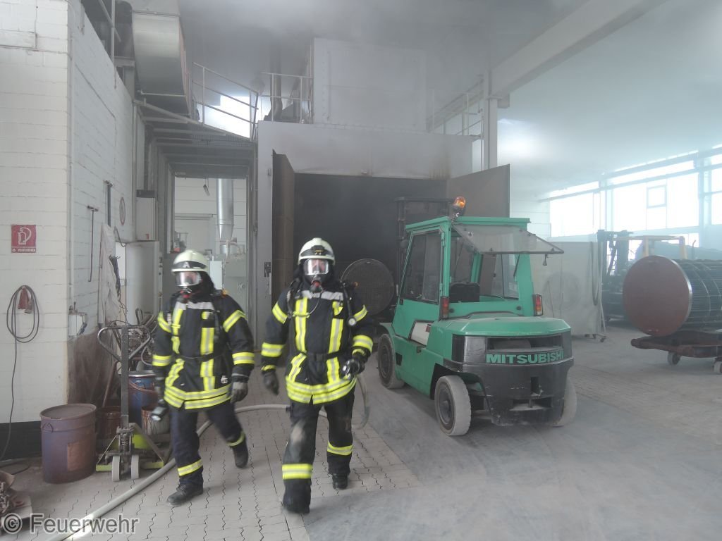 (ct) Heute wurde die Ortsfeuerwehr Stuhr über Sirene und Meldeempfänger zu einer unklaren Rauchentwicklung alarmiert. Aus einer Halle in der Straße An der Bahn in Moordeich trat Rauch aus verschiedenen Öffnungen des Gebäudes aus. Durch den Einsatzleiter wurde ein Trupp unter umluftunabhängigem Atemschutz auf das Dach der Halle und ein weiterer zur Erkundung in die Halle geschickt. Offnes Feuer konnte nicht gefunden werden. In der Halle befand sich ein Ofen zum Härten von Bauteilen, der in Betrieb war. Nach Abschalten des Ofens endete auch die Rauchentwicklung. Zur Durchlüftung der Halle wurde alle Tore geöffnet. Bis auf ein Fenster, durch das sich die Feuerwehr Zugang zur Halle verschaffte entstand kein Schaden. Der Einsatz konnte nach einer Stunde beendet werden.