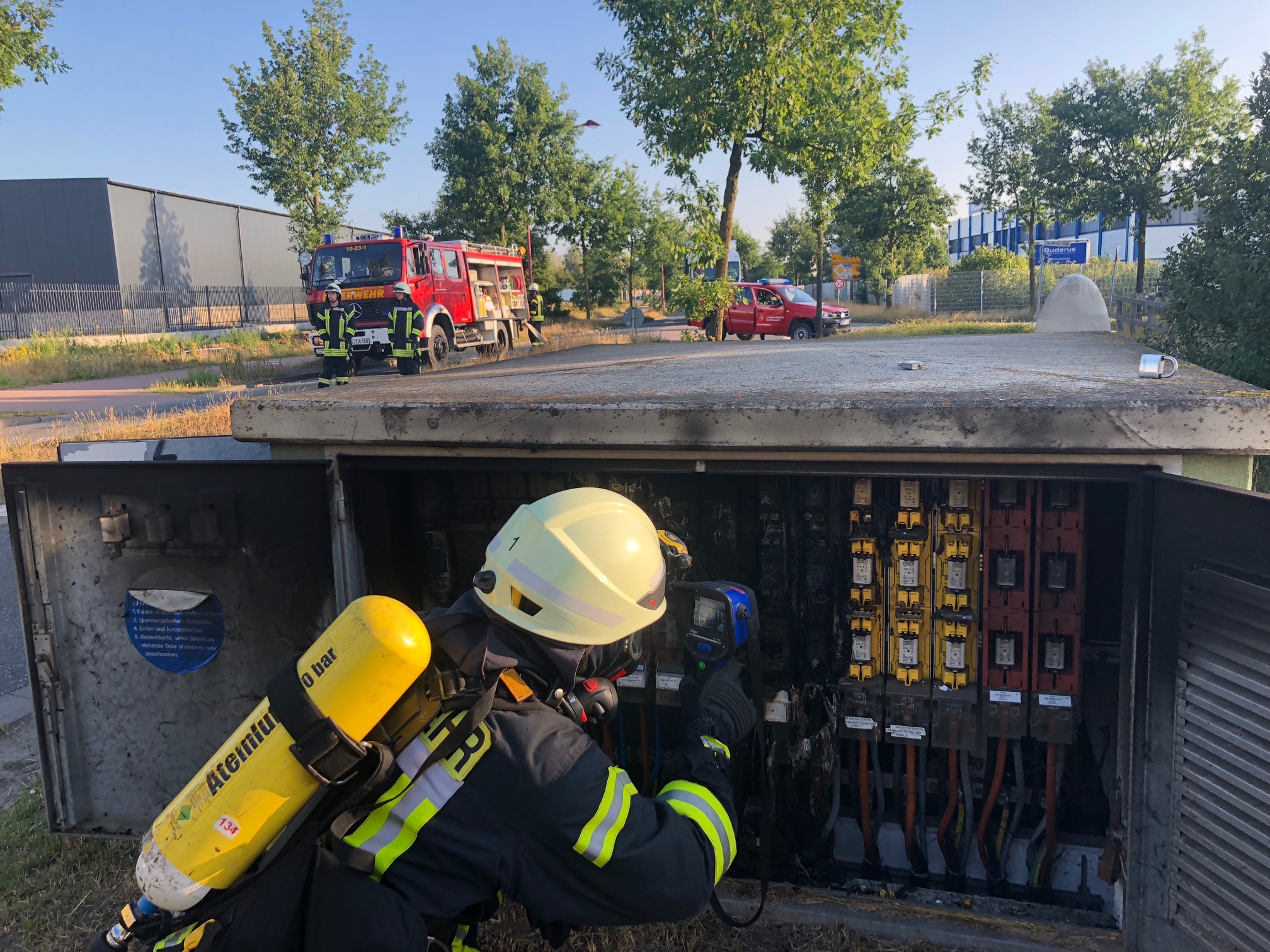 Brinkum-(cm). Am Montagmorgen um 06:04 Uhr wurde die Feuerwehr Brinkum und der Rettungsdienst zu einem Brandeinsatz in das Gewerbegebiet Brinkum-Süd gerufen. Auf der Diepholzer Straße in Höhe der Lise-Meitner-Strasse brannte die Elektroverteilung in einer Trafostation. Die Feuerwehr sperrte den Gefahrenbereich zunächst weiträumig ab. Zusammen mit dem Energieversorger wurde die Trafostation geöffnet, welche zuvor Stromlos geschaltet worden ist. Im Anschluss konnte die Brandquelle gezielt mit CO2 (Kohlenstoffdioxid) erstickt werden. Abschließend wurde die Trafostation belüftet und an den Energieversorger übergeben. Die Feuerwehr konnte ihren Einsatz nach ca. 2 Stunden wieder beenden.