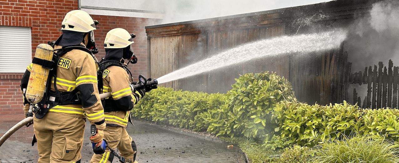 Beim Eintreffen der Einsatzkräfte stand das Dach des Carports und ein darin befindlicher Schuppen mit einer starken Flammenbildung in Brand. Fahrzeuge standen zu diesem Zeitpunkt nicht im Carport. Die Feuerwehr hat sofort mit der Brandbekämpfung begonnen. Hierzu wurden von der vorderen als auch der hinteren Seite zwei C-Rohre durch Trupps unter Atemschutz vorgenommen. Der Löschangriff zeigt schnell Wirkung, sodass das Feuer gelöscht werden konnte. Eine angrenzende Garage wurde von innen kontrolliert, wies aber kein Feuer auf. Nach dem Ablöschen wurde das Dach mit einer Wärmebildkamera kontrolliert. Da noch eine hohe Temperatur zu messen war, wurde die verbliebene Dachhaut mit einer Kettensäge geöffnet und so die letzten Glutnester gelöscht. Kurz vor dem Brandausbruch wurden Dachdeckerarbeiten mit einem Brenner am Carport durchgeführt.