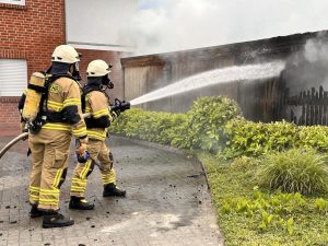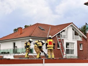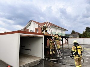 Beim Eintreffen der Einsatzkräfte stand das Dach des Carports und ein darin befindlicher Schuppen mit einer starken Flammenbildung in Brand. Fahrzeuge standen zu diesem Zeitpunkt nicht im Carport. Die Feuerwehr hat sofort mit der Brandbekämpfung begonnen. Hierzu wurden von der vorderen als auch der hinteren Seite zwei C-Rohre durch Trupps unter Atemschutz vorgenommen. Der Löschangriff zeigt schnell Wirkung, sodass das Feuer gelöscht werden konnte. Eine angrenzende Garage wurde von innen kontrolliert, wies aber kein Feuer auf. Nach dem Ablöschen wurde das Dach mit einer Wärmebildkamera kontrolliert. Da noch eine hohe Temperatur zu messen war, wurde die verbliebene Dachhaut mit einer Kettensäge geöffnet und so die letzten Glutnester gelöscht. Kurz vor dem Brandausbruch wurden Dachdeckerarbeiten mit einem Brenner am Carport durchgeführt.