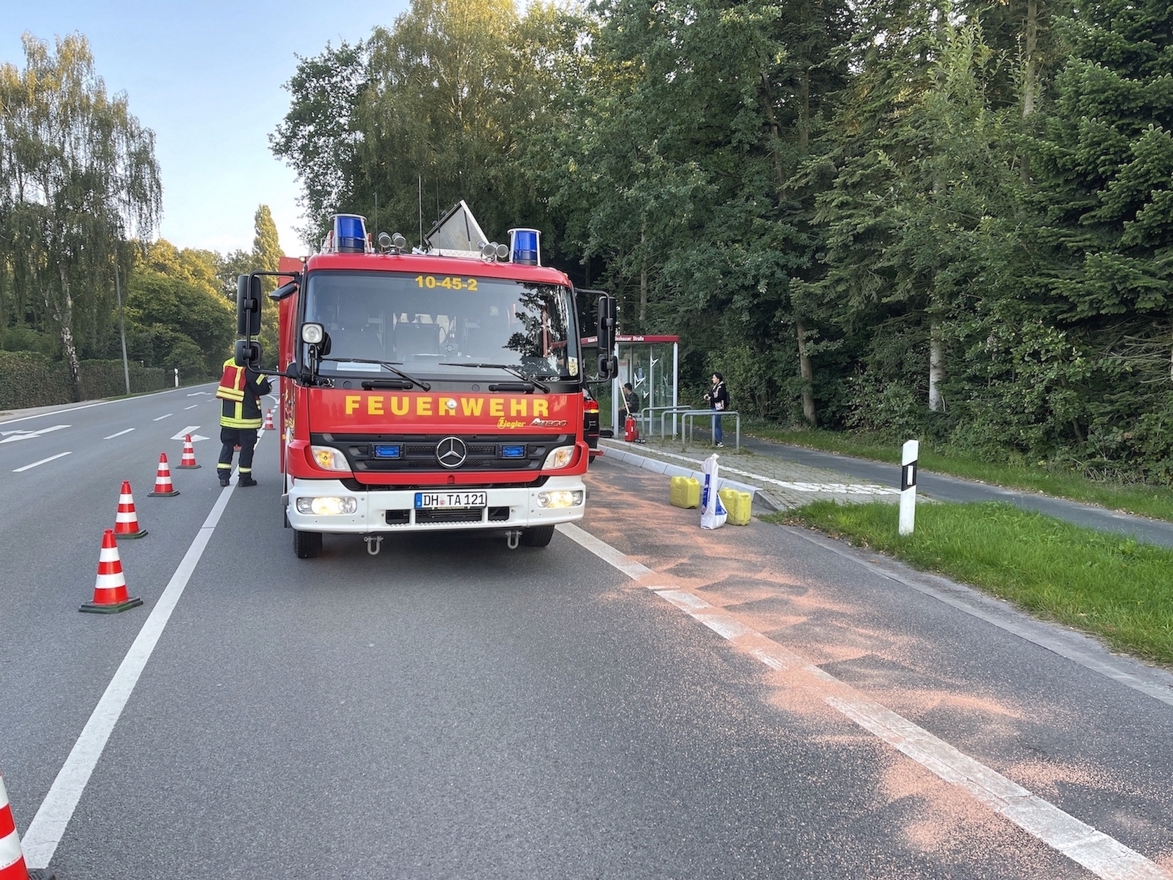 Fahrenhorst – (nc) Um 17:27 Uhr wurde die Ortsfeuerwehr Fahrenhorst zu einem technische Hilfeleistungseinsatz in die Heiligenroder Straße alarmiert. Beim Eintreffen an der Einsatzstelle stand ein PKW auf einer Bushaltestelle bei dem Diesel aus dem Motorraum tropfte. Bei dem Erkunden nach der genauen Leckage konnte ein gerissener Treibstoffschlauch als Ursache festgestellt werden. Die Dieselspur, die sich über etwa 250m hinzog wurde mit Bindemittel ab gestreut um eine weitere Gefahr für die Umwelt und Verkehrsteilnehmer zu verhindern. Nach ca. 45 wurde die Einsatzstelle an die Straßenmeisterei und Polizei übergeben und die 9 Einsatzkräfte konnten die Einsatzstelle wieder verlassen.