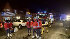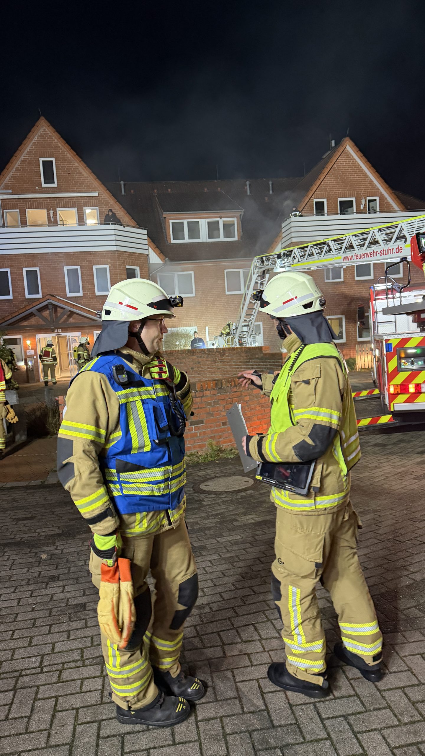 Laut Einsatzmeldung hatte die Brandmeldeanlage eines Altenheims im Weimarer Weg ausgelöst. Bereits auf der Anfahrt erhielten die Einsatzkräfte von der Leitstelle die Rückmeldung, dass es sich um ein bestätigtes Feuer in einem Bewohnerzimmer handeln solle. Aufgrund dieser Meldung ließ Einsatzleiter Nico Wahlers die Alarmstufe auf „FOB 2“ erhöhen. Im Ernstfall hätte dies die Alarmierung weiterer Einheiten aus den Gemeinden Stuhr und Weyhe sowie der Kreisfeuerwehr zur Folge gehabt.