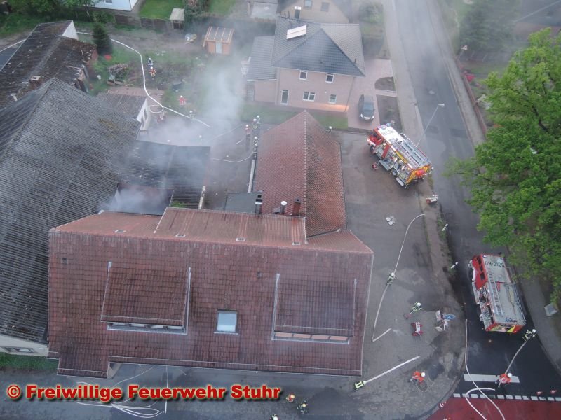(ct) Am Dienstagabend wurde die alljährliche Alarmübung der Gemeindefeuerwehr Stuhr durchgeführt. Um das Einsatzgeschehen so realistisch wie möglich zu machen, wird diese Übung vorher nicht angekündigt, sondern wie ein normaler Einsatz über Sirene und Meldeempfänger alarmiert. Dies dient der Überprüfung der Alarm- und Ausrückeordnung. Schauplatz war das ehemalige Gasthaus Bellmann in Moordeich, dass mehr als 125 Jahre zentraler Anlaufpunkt im Ortsteil Moordeich war und zum Ende des letzten Jahres geschlossen hat. Das Gebäude steht nun vor dem Abriss.