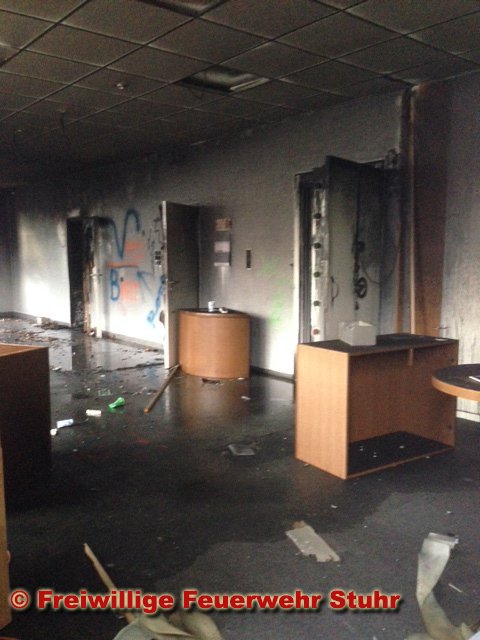 (ng) Am Freitagabend um 19 Uhr wurde die Ortsfeuerwehr Groß Mackenstedt mit dem Einsatzstichwort „Gebäudebrand“ per Sirene und Meldeempfänger alarmiert. Im Rahmen einer Alarmübung in der alten geräumten Niederlassung der Volksbank in Groß Mackenstedt, die in Kürze einem Neubau weichen muss, konnten die Einsatzkräfte unter realen Bedingungen ihre Einsatzfertigkeiten unter Beweis stellen.
