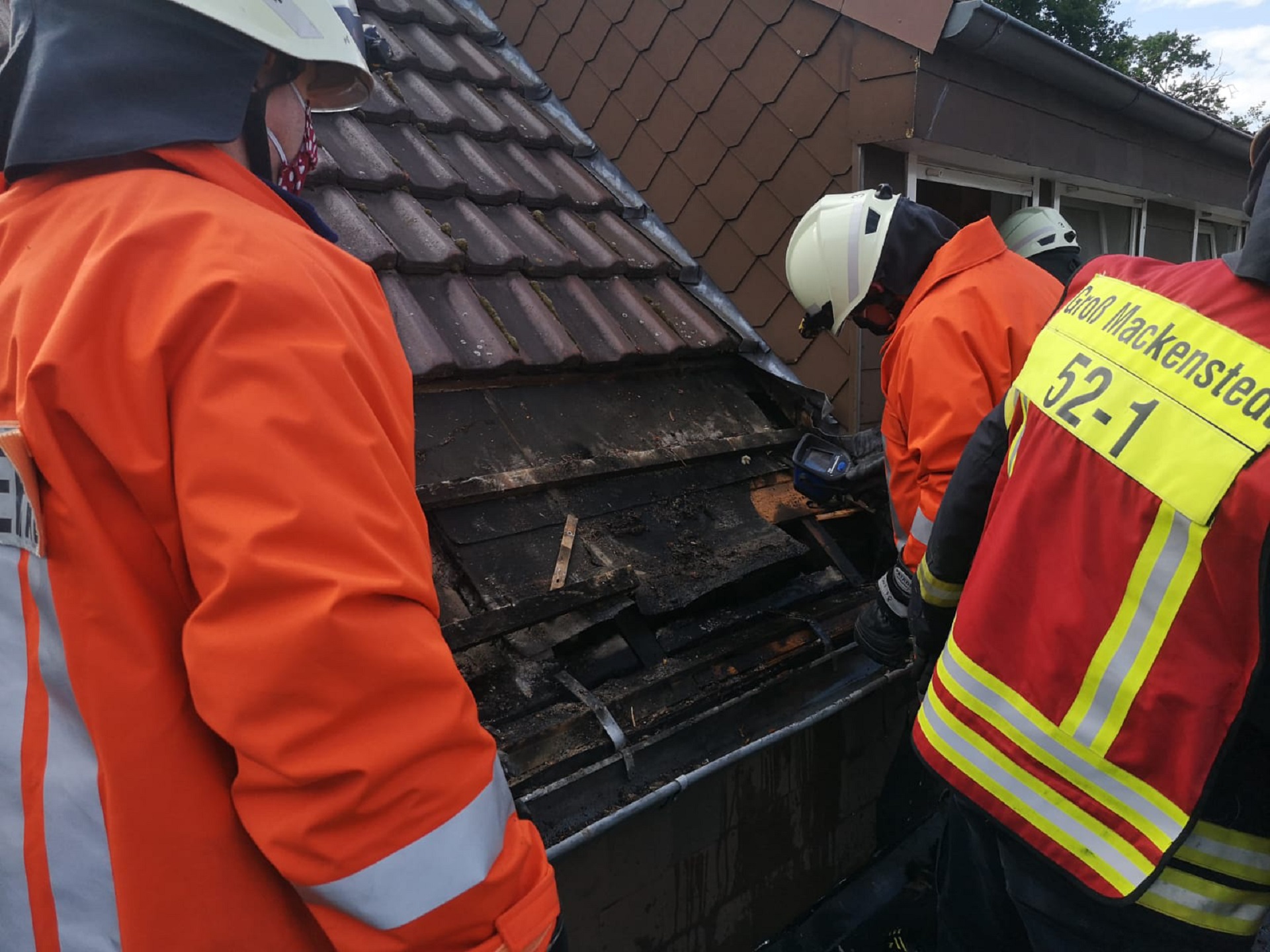Gr.Mackenstedt-(ps). Die Feuerwehren aus Groß Mackenstedt und Brinkum wurden am 06.06 um 16:47 zu einem Entstehungsbrand im Dachbereich an einem Einfamilienhaus alarmiert.