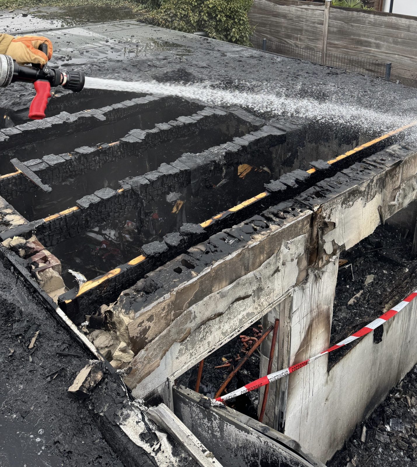 Brinkum-(mg). Ein Löschfahrzeug der Ortsfeuerwehr Brinkum fuhr am Sonntag um 15:15 Uhr erneut zum vorherigen Einsatzort, wo es am Sonntagmittag zu einem Gebäudebrand gekommen war. Hier wurden nochmals Nachlöscharbeiten durchgeführt, um ein erneutes Aufflammen zu verhindern.