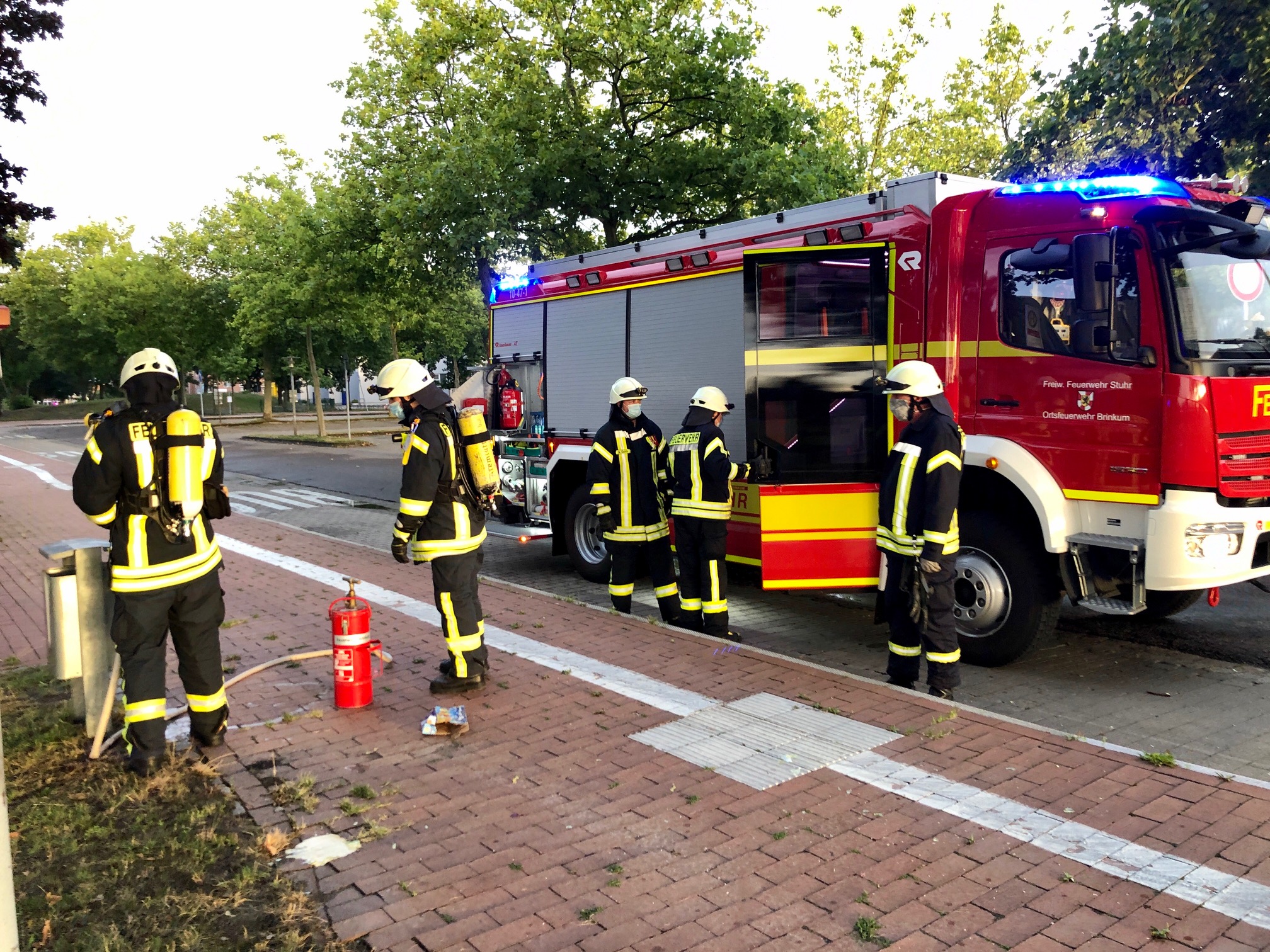 Brinkum-(cm). Die Feuerwehr Brinkum ist am Samstagabend um 19:51 Uhr zu einem Brandeinsatz gerufen worden. An einer Haltestelle der KGS Brinkum brannte der Inhalt einer Blechmülltonne. Der Angriffstrupp konnte den Brand zügig mit einem Kleinlöschgerät ablöschen. Nach 15 Minuten war der Einsatz abgearbeitet.