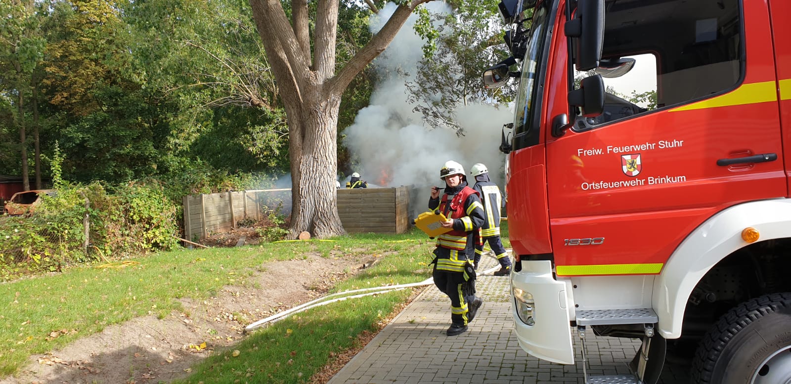 Brinkum-(cm). Um 15:30 Uhr wurde die Feuerwehr Brinkum und der Rettungsdienst zu einem Brandeinsatz nach Brinkum-Nord gerufen. In der Bremer Straße, brannte bei Eintreffen der Feuerwehr ein Komposthaufen in voller Ausdehnung. Zwei Atemschutztrupps konnten den Brand schnell unter Kontrolle bringen. Ein Anwohner der bereits Löschversuche unternommen hatte, musste vor Ort durch den Rettungsdienst versorgt werden. Nach einer Stunde war der Einsatz abgearbeitet.