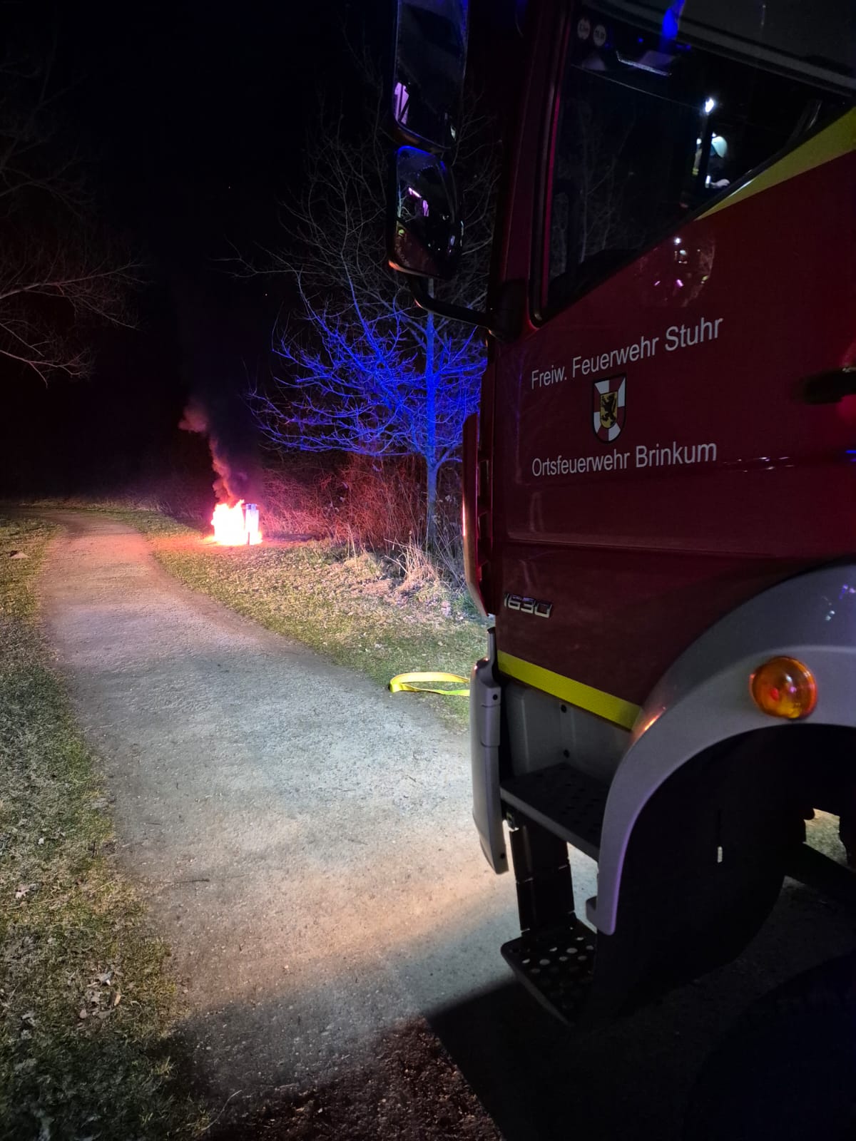 Brinkum(nk). Am Freitagabend um 19:35 Uhr wurde die Ortsfeuerwehr Brinkum zu einem Brandeinsatz in den Brinkumer Park Osterbruchwiesen alarmiert. Laut Meldung der Leitstelle aus Diepholz sollte es hier zu einem Schadenfeuer gekommen sein. Bei Eintreffen der ersten Einsatzkräfte bestätigte sich die Lage. Hierbei brannte eine Parkbank in voller Ausdehnung. Ein Trupp unter Umluft unabhängigem Atemschutz löschte die Parkbank mittels einem C-Rohr ab. Nach gut 45 Minuten konnte der Einsatz wieder beendet werden.