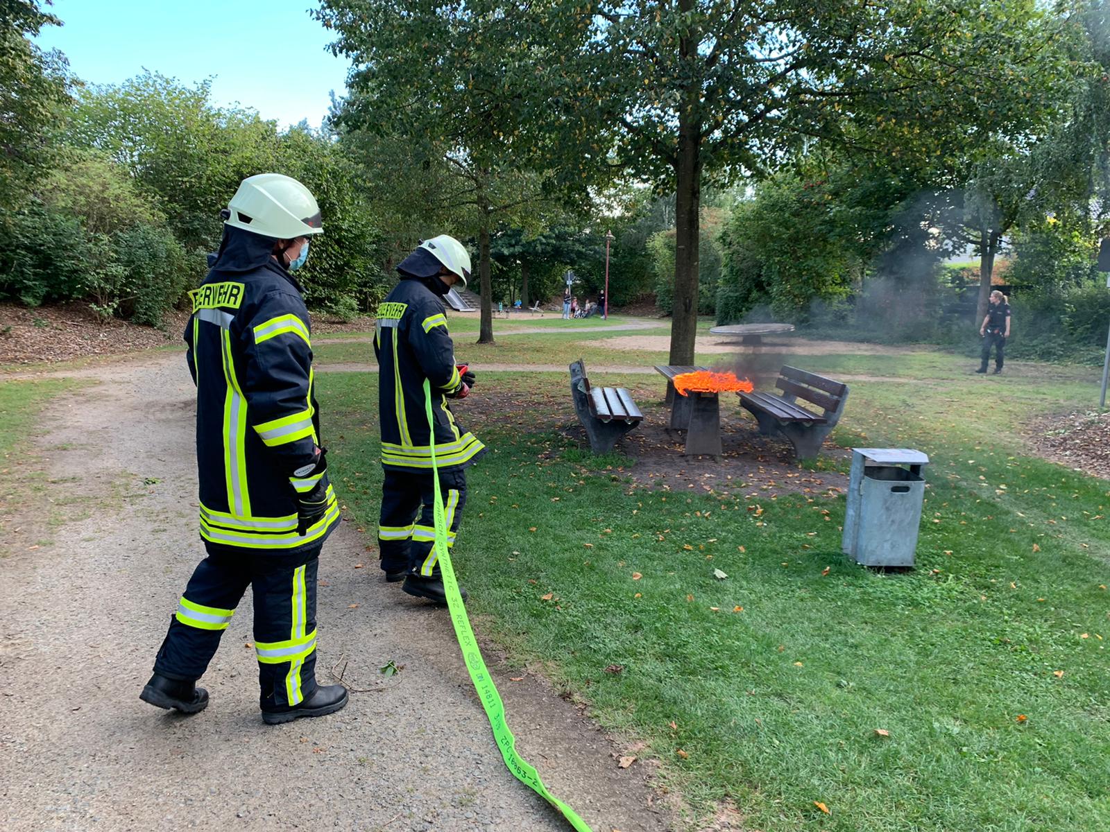 Brinkum-(cm). Die Feuerwehr Brinkum und der Rettungsdienst sind am Mittwochabend um 18:27 Uhr zu einem Brandeinsatz nach Brinkum Briseck gerufen worden. Auf einem Kinderspielplatz in der Jupiterstraße, brannte ein Tisch. Der Angriffstrupp des Löschgruppenfahrzeuges konnte des Feuer schnell ablöschen. Nach 30 Minuten war der Einsatz wieder beendet. Die Einsatzstelle wurde an die Polizei übergeben.