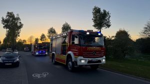 Brinkum-(mg). Die Ortsfeuerwehr Brinkum wurde um 20:29 Uhr zu einem gemeldeten Flächenbrand in die Weyher Straße alarmiert.