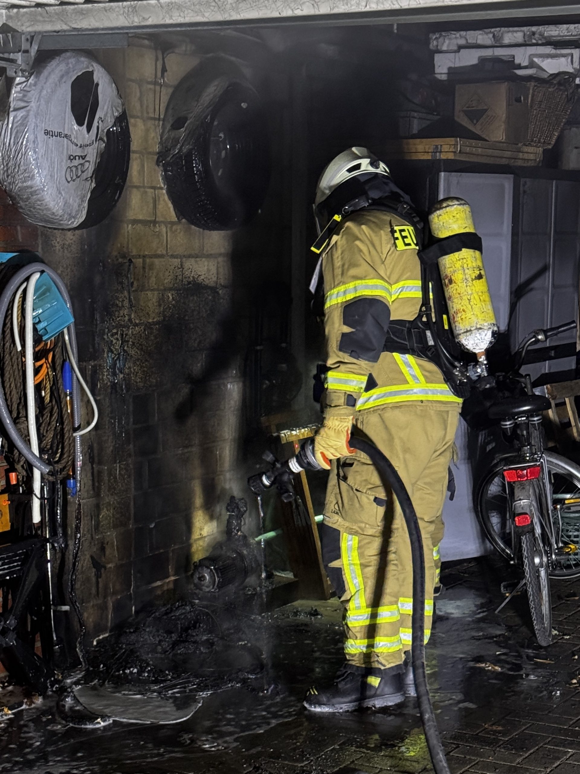 Vor Ort wurde ein Brand einer Gartenpumpe im Inneren der Garage aufgefunden. Die Gartenpumpe konnte durch einen Anwohner schnell gelöscht werden, sodass die Feuerwehr nur noch Nachlöscharbeiten durchführen musste. Anschließend wurde der Bereich mit der Wärmebildkamera kontrolliert.