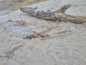 Vor Ort stellte die Kameraden fest das auf einer Freifläche ein Lagerfeuer mit Hilfe von div. Brandbeschleunigern entfacht worden ist. Die Feuerwehr löschte das Lagerfeuer mithilfe von Löschrucksäcken ab.