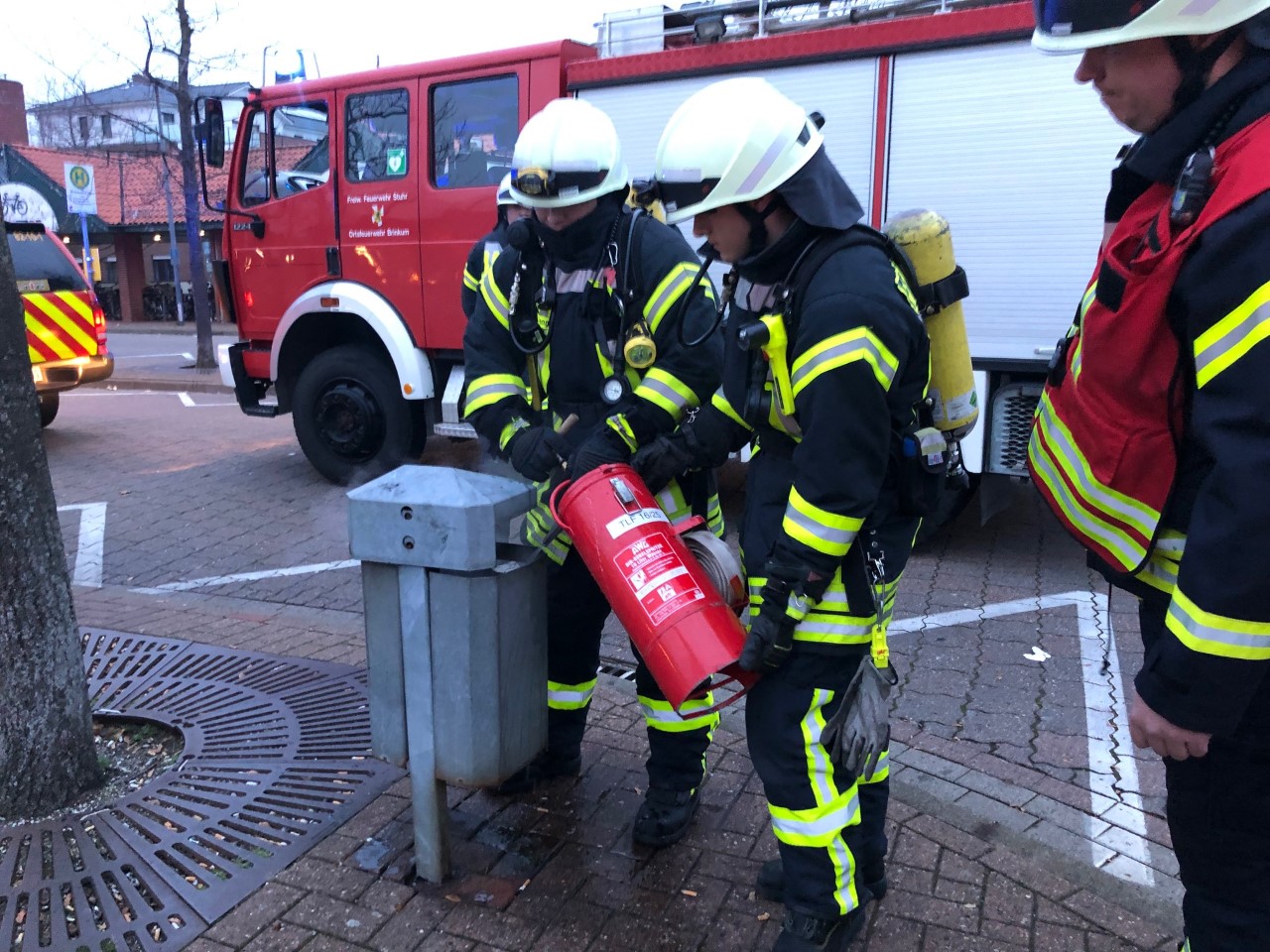 Brinkum-(cm). Am Mittwochnachmittag um 16:09 Uhr wurde die Feuerwehr Brinkum zu einem Brandeinsatz gerufen. An einer Haltestelle des Brinkumer ZOB, brannte der Inhalt einer Blechmülltonne. Das Feuer wurde durch den Angriffstrupp des Brinkumer Tanklöschfahrzeuges mit Hilfe eines Kleinlöschgerätes abgelöscht. Nach 20 Minuten war der Einsatz abgearbeitet.