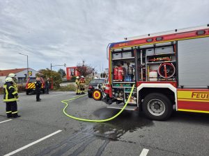 Brinkum-Nord(nk). Am Sonntagmittag um 14:49 Uhr wurde die Feuerwehr Brinkum zusammen mit dem Rettungsdienst zu einem PKW-Brand nach Brinkum-Nord alarmiert. Laut Meldung der Leitstelle aus Diepholz sollte es auf dem Parkplatz eines dortigen Möbelhauses zu einem Feuer an einem PKW gekommen sein. Beim Eintreffen der ersten Einsatzkräfte bestätigte sich die Lage. Durch beherztes Eingreifen von Passanten mittels eines in der Nähe befindlichen Feuerlöscher konnte der Brand bereits vor Eintreffen der Feuerwehr größtenteils gelöscht werden. Somit führten die Einsatzkräfte nur noch Nachlöscharbeiten durch und kontrollierten den Motorraum des PKW´s mittels Wärmebildkamera auf weitere Glutnester. Nach gut 45 Minuten konnte der Einsatz wieder beendet werden.