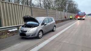 Stuhr – (ps). Heute Morgen um 07:33 Uhr wurde die Feuerwehr Gr. Mackenstedt zu einem PKW-Brand alarmiert. Einsatzort war die Autobahn 1 zwischen AD-Stuhr und AS Brinkum. Gemeldet wurde, dass ein PKW im Bereich des Motorraums brennen soll.
