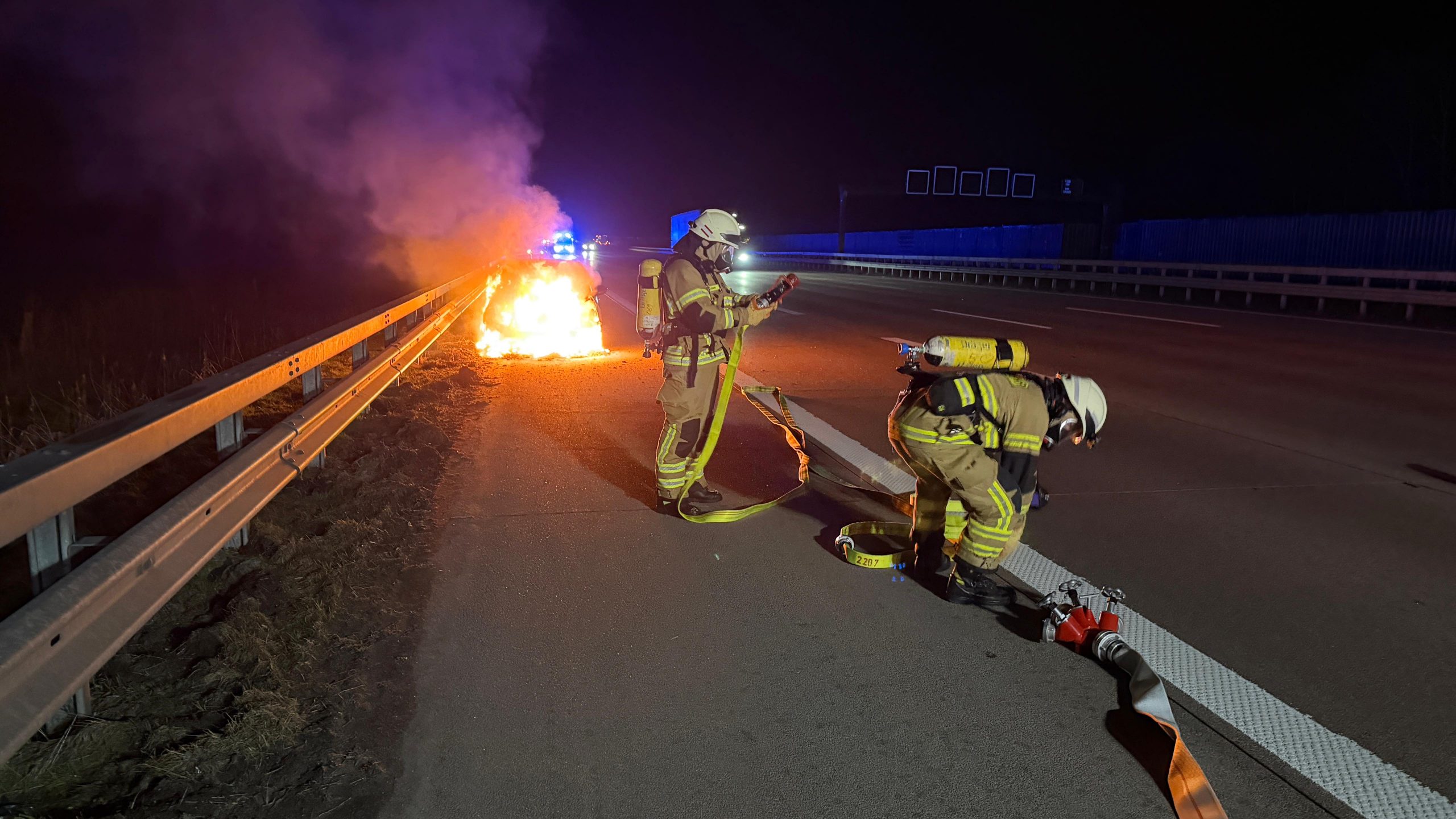 Brinkum-(mg). Die Ortsfeuerwehr Brinkum wurde am Mittwochabend um 22:14 Uhr zusammen mit der Autobahnpolizei zu einem gemeldeten PKW-Brand auf die BAB 1 zwischen der Anschlussstelle Brinkum und dem Autobahndreieck Stuhr alarmiert. Laut erster Meldung sollte sich das Fahrzeug in Vollbrand befinden.