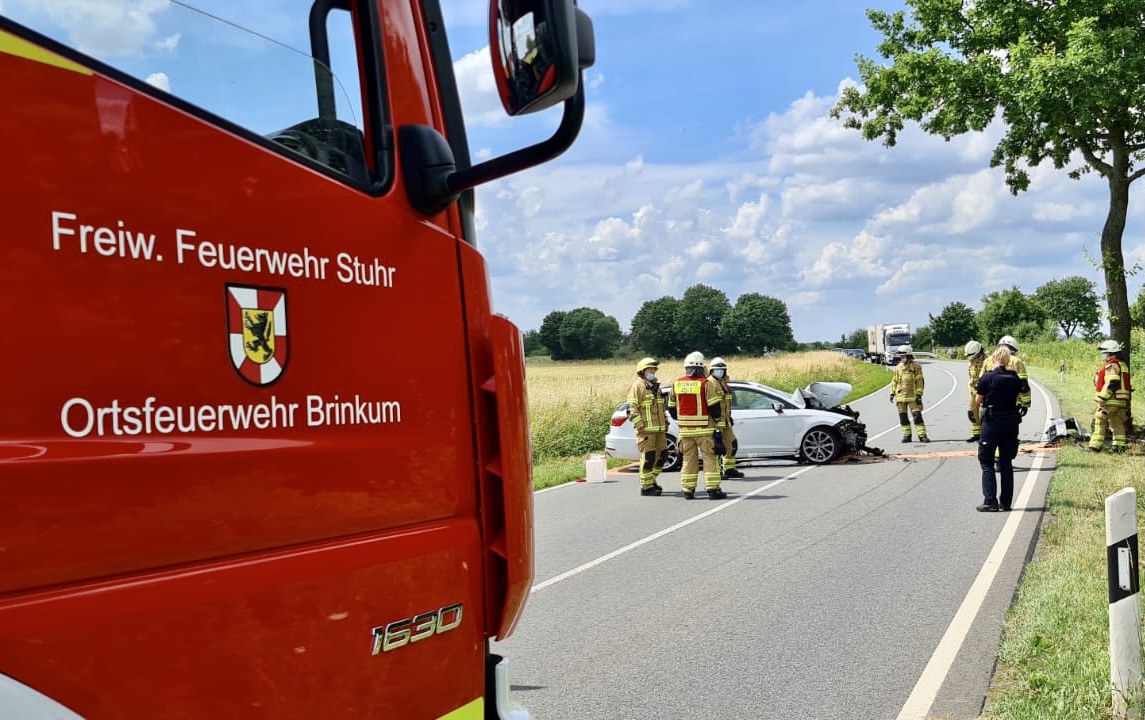 Brinkum-Nord (nk). Am Donnerstagmittag um 14:03 Uhr, wurden die Feuerwehr Brinkum und der Rettungsdienst zu einem Verkehrsunfall in die Carl-Zeiss-Straße nach Brinkum Nord gerufen. Nach Meldung der Leitstelle sollte es hier nach einem Vekehrsunfall zu einem Brand gekommen sein. Nach Eintreffen der ersten Einsatzkräfte konnte dies glücklicherweise nicht festgestellt werden, sodass die Aufgabe das Binden der auslaufenden Betriebstoffe war. Nach gut 1 Stunde konnte der Einsatz wieder beendet werden.