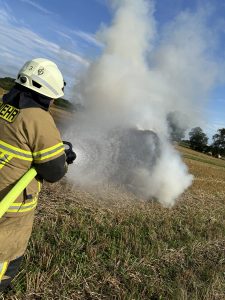 Gr. Mackenstedt – (ps). Die Ortsfeuerwehr Gr. Mackenstedt wurde am Mittwochmorgen um 9:25Uhr mit der Polizei in die Siekstraße zu einer Unklaren Rauchentwicklung aus einem Rundballen gerufen. Ein Aufmerksamer Autofahrer hatte in der Ferne auf einem Feld eine Rauchentwicklung an einem Rundballen bemerkt und den Notruf gewählt.