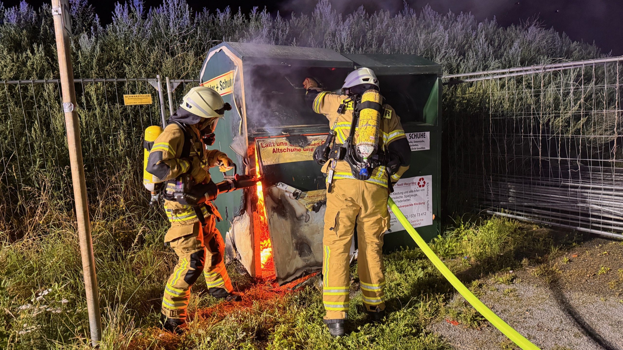 Brinkum (cm). Die Feuerwehr Brinkum wurde in der Nacht zu Mittwoch um 02:11 Uhr zu einem Brandeinsatz gerufen. In der Straße „Am Bahnhof“ meldeten Anwohner über den Notruf eine unklare Rauchentwicklung. Vor Ort stellten die Einsatzkräfte fest, dass der Inhalt eines Altkleidercontainers brannte. Ein Trupp unter Atemschutz konnte das Feuer schnell löschen. Nach 30 Minuten war der Einsatz beendet.