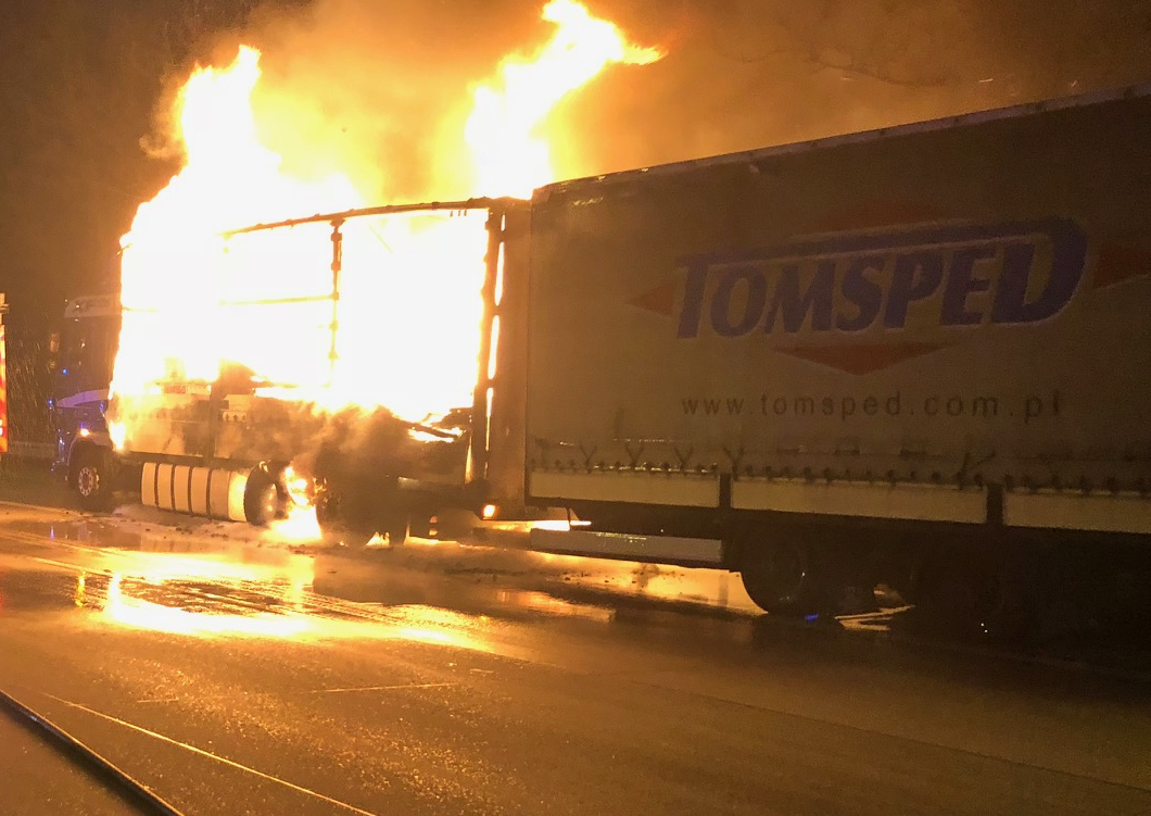 LKW Brand auf der Autobahn 1