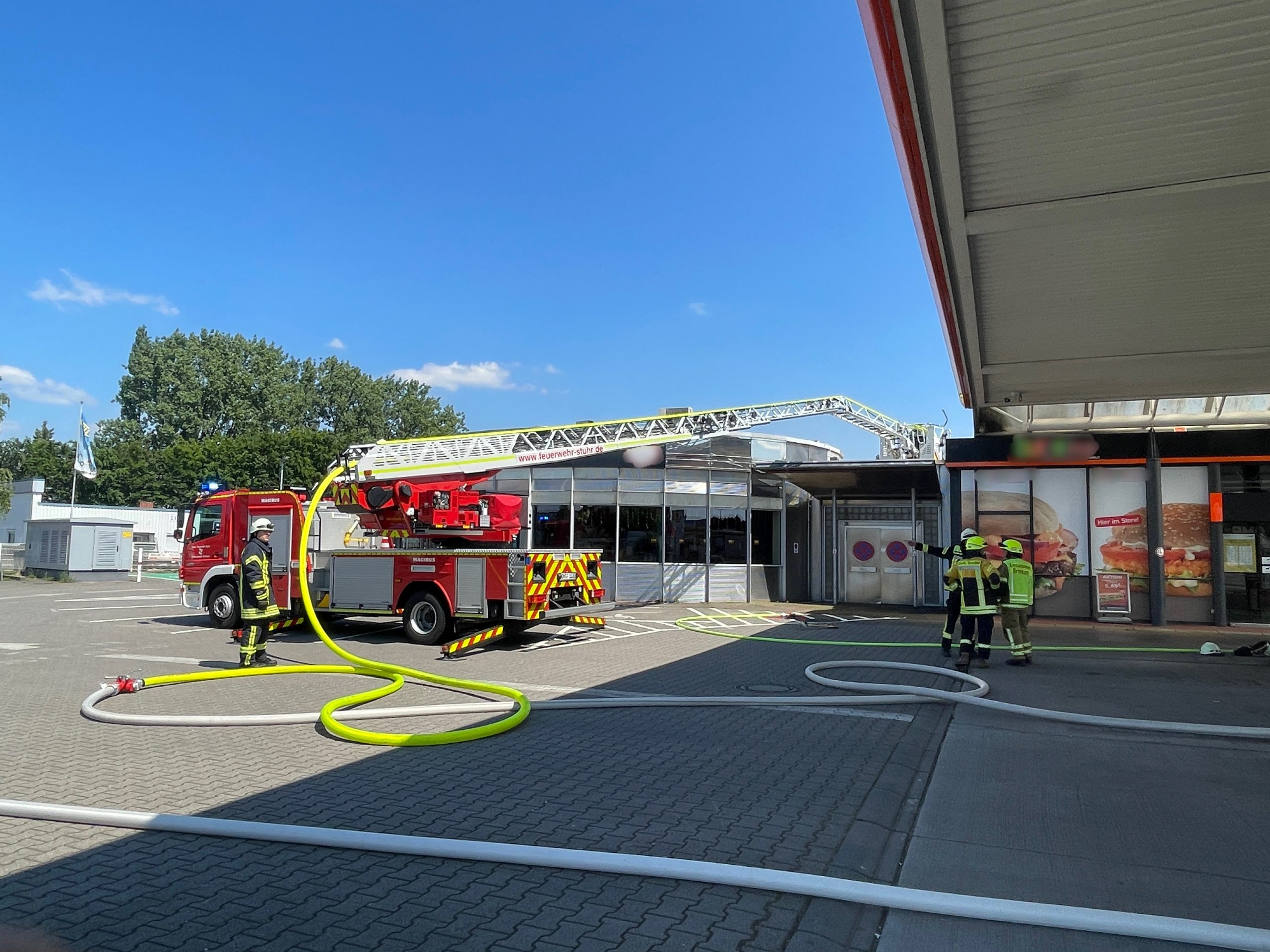 Die Mitarbeiter und Kunden der Tankstelle konnten das Gebäude schnell verlassen. Eine Person hat Brandrauch eingeatmet und wurde vor Ort durch den Rettungsdienst betreut.