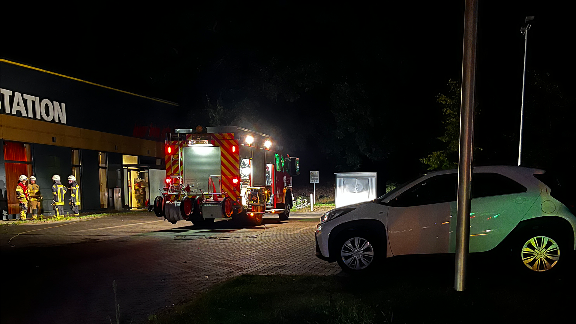 Bei erster Erkundung stellt sich heraus, dass der Einbruchalarm durch eine Fehlbedienung auslöste und somit das Gebäude vernebelt wurde und die Brandmeldeanlage anschlug. Die Feuerwehr führte Belüftungs- und Entrauchungsmaßnahmen durch, setzte die Anlage zurück und übergab sie anschließend an den Betreiber. Nach ungefähr 45 Minuten war der Einsatz abgeschlossen.