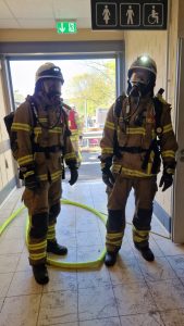 Brinkum-(cm). Die Feuerwehr Brinkum und der Rettungsdienst wurden am Donnerstagmorgen um 08:40 Uhr zu einem Brandeinsatz nach Brinkum-Nord gerufen. In einem Einkaufszentrum in der Henleinstraße, hatte die automatische Brandmeldeanlage ausgelöst. Bei Eintreffen der Feuerwehr, war das Gebäude bereits vorbildlich durch Mitarbeiter Evakuiert worden. Nach Erkundung stellten die Kräfte eine starke Rauchentwicklung im Bereich der WC-Anlage fest. Ein Mitarbeiter konnte offenes Feuer im Bereich WC-Anlage bestätigen, dieser hatte den Brand mithilfe eines Feuerlöschers bereits eindämmen können. Ein Atemschutztrupp ging mit einem C-Rohr in das Gebäude vor und löschte mehrere brennende Gegenstände ab. Ein Mitarbeiter welcher Rauchgase eingeatmet hatte, wurde an den Rettungsdienst übergeben. Im weiteren Einsatzverlauf mussten die Betroffenen Gebäudeteile von Brandrauch befreit werden, hierzu wurden zwei Hochleistungslüfter eingesetzt. Nach drei Stunden konnte der Einsatz für die Feuerwehr beendet und die Einsatzstelle an die Polizei übergeben werden.