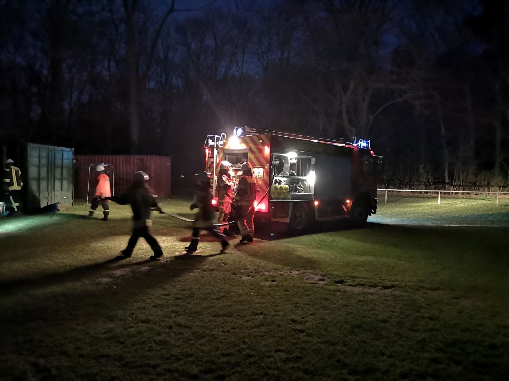 Heiligenrode (rs) Aufgrund einer kleinen Grillparty am Rande des Sportplatzes in der Fanger Straße in Heiligenrode, wurde gegen 21:32 Uhr die Feuerwehr Heiligenrode per Meldeempfänger alarmiert. Am Einsatzort fand die Feuerwehr einen kurz zuvor verlassenen Platz vor. Offensichtlich wurden die Party-Teilnehmer von der Feuerwehr gestört so, dass diese die Örtlichkeit fluchtartig verließen. Denn außer zurückgelassener Knabbereien und Getränke, fand die Feuerwehr einen Grill vor, in dem sich noch brennendes Holz befand, der offensichtlich zur Alarmierung der Feuerwehr führte. Die Feuerwehr löschte den Grill mit dem Schnellangriffsschlauch aus dem TLF kurzerhand ab und übergab die Örtlichkeit an die Polizei. Es befanden sich 17 Feuermitglieder vor Ort sowie 11 in Bereitschaft im Feuerwehrhaus. Nach etwa 30 Minuten konnte der Einsatz beendet werden.