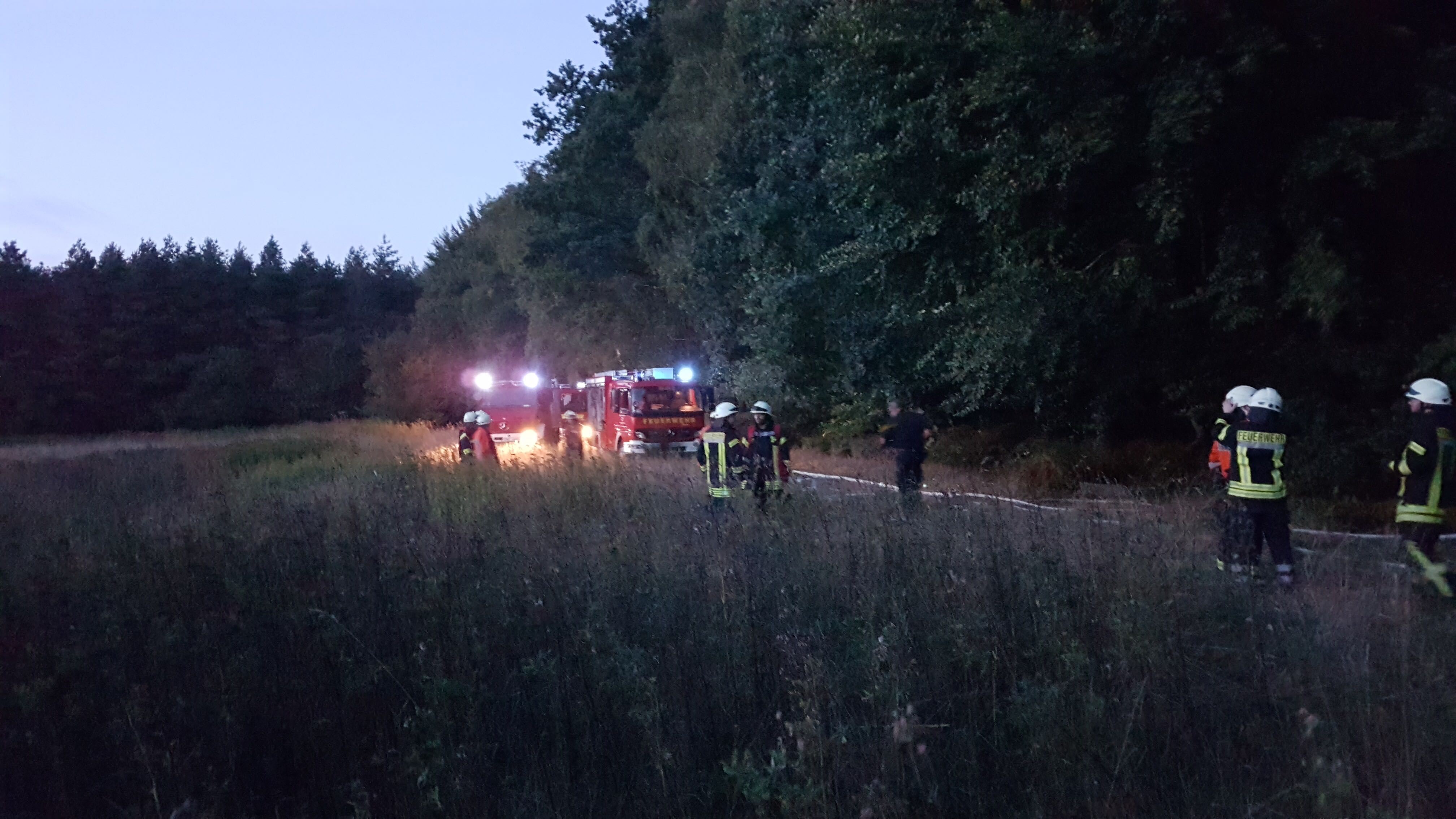 Fahrenhorst – Um 19:23 wurden die Ortsfeuerwehren Fahrenhorst, Heiligenrode und Ristedt zu einem Flächenbrand in einem Waldgebiet in Fahrenhorst alarmiert. Beim Eintreffen der Einsatzkräfte brannten ca. 50qm Unterholz am Waldrand. Das Feuer konnte unter Einsatz von 2 C-Strahlrohren und Feuerpatschen schnell unter Kontrolle gebracht und gelöscht werden. Die Tanklöschfahrzeuge aus Heiligenrode und Ristedt bildeten eine Wasserreserve, die weiteren Einsatzfahrzeuge konnten die Alarmfahrt abbrechen und an ihren Stützpunkt zurückkehren. MIt einer Wärmebildkamera wurde nach Glutnestern geschaut um ein erneutes Ausbrechen des Feuers zu vermeiden. Der Einsatz könnte nach ca. 2 Stunden beendet werden.