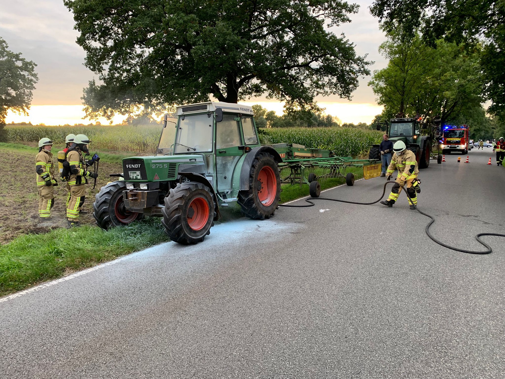 Stuhr-(ps). Um 18:40 Uhr wurden die Feuerwehren Groß Mackenstedt, Stuhr sowie der Einsatzleitwagen aus Fahrenhorst über Meldeempfänger und Sirene zu einem Traktorbrand in die Obernheider Str. alarmiert.