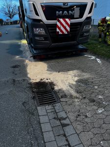 Nach erster Meldung der Leitstelle sollte hier Diesel eines LKWs in die Oberflächenentwässerung laufen.