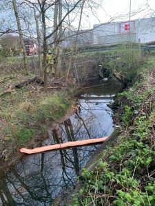 Parallel dazu wurden die Regenwasserkanäle kontrolliert und in einem Grabeneinlauf mehrere Ölsperren gesetzt. – So konnte das Weiterlaufen des Kraftstoffs nach Varrel verhindert werden.
