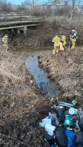 Brinkum-(mg). Die Ortsfeuerwehr Brinkum wurde am Freitagabend um 18:03 Uhr zu einem Gefahrguteinsatz alarmiert. Nach Angaben der Leitstelle war auf einem dortigen Gewässer ein Ölfilm festgestellt worden.