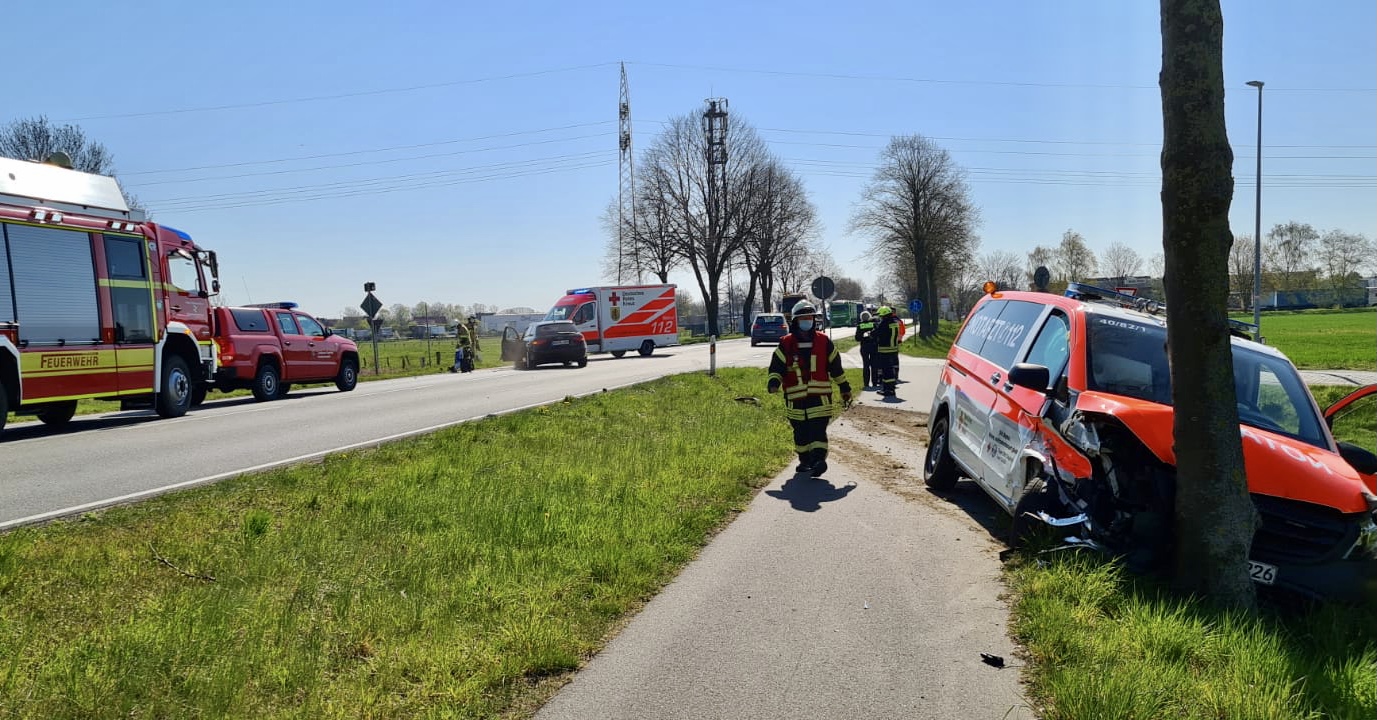 Seckenhausen-(cm). Noch auf der Rückfahrt von der ersten Einsatzstelle in Brinkum-Nord, wurde die Feuerwehr Brinkum zu einem weiteren Einsatz gerufen. Auf der Bundesstraße 322 in Höhe der Straße „Weiße Riede“ war es zu einem Verkehrsunfall zwischen PKW und Notarzteinsatzfahrzeug gekommen. Die Kräfte der Feuerwehr stellten vor Ort den Brandschutz sicher und kümmerten sich um das Binden von ausgelaufenen Betriebsstoffen. Zwei Leichtverletzte Personen wurden vom Rettungsdienst in ein Krankenhaus verbracht. Nach 45 Minuten war der Einsatz für die Feuerwehr wieder beendet.