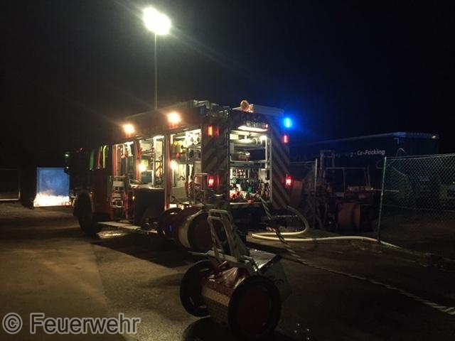 Aufmerksame Anlieger eines benachbarten Gewerbebetriebes bemerkten durch Zufall einen Feuerschein in der Werkstatthalle eines LKW-Servicebetriebes und setzten den Notruf ab. So mussten die eintreffenden Einsatzkräfte glücklicherweise „nur“ einen Entstehungsbrand bekämpfen. Um Zugang zum Einsatzort zu erhalten, musste zunächst ein Zaun durchtrennt und eine Feuerschutztür aufgebrochen werden. Zwei Trupps unter umluftunabhängigen Atemschutz wurden zur Erkundung eingesetzt. Als Brandausbruchstelle wurde ein Batteriekasten unter einem Kühlsattelauflieger ausgemacht, welcher mit einem C-Hohlstrahlrohr abgelöscht werden konnte. Die Batterien wurden demontiert und der Auflieger durch den Eigentümer aus der Halle gezogen werden.
