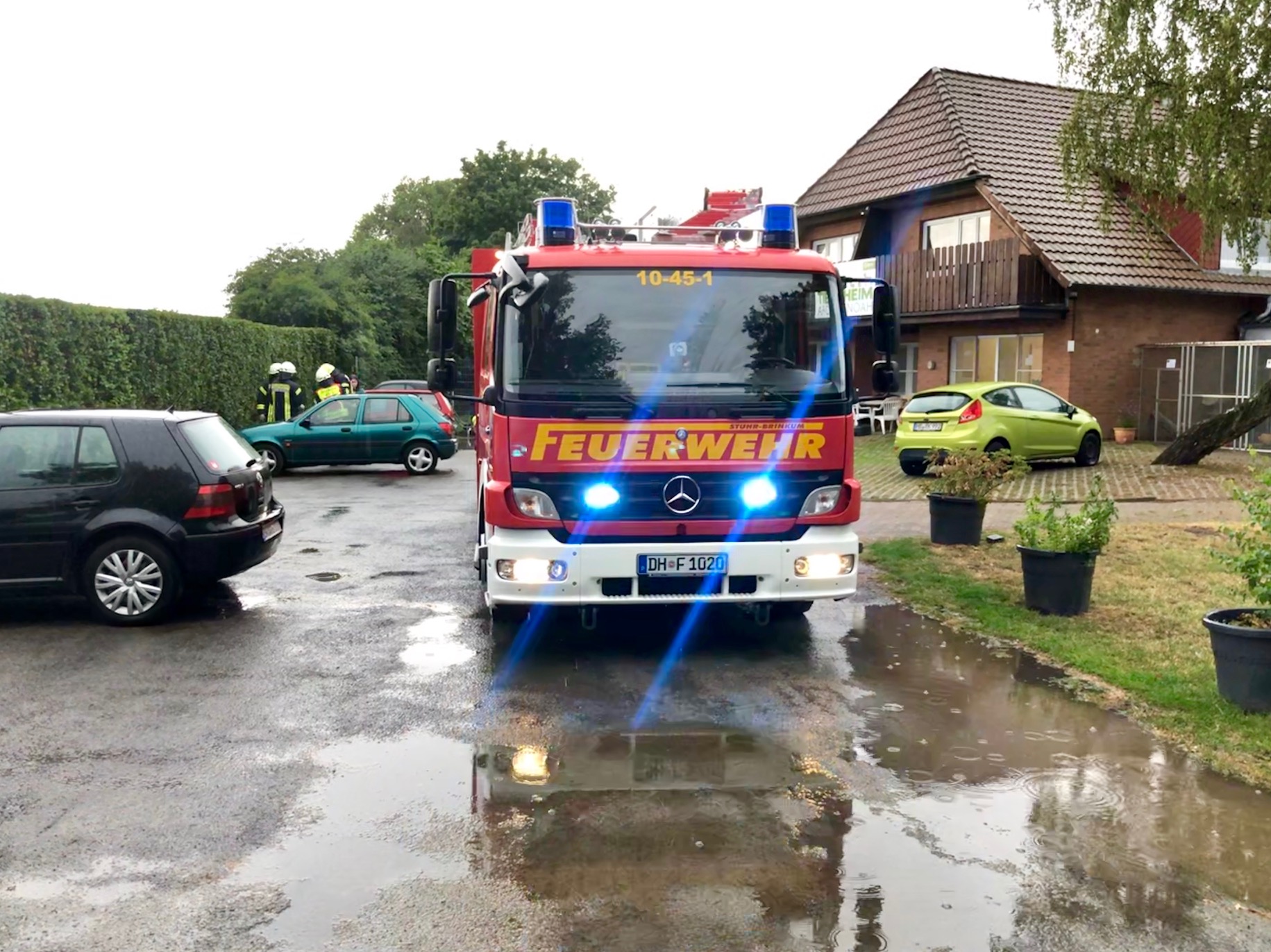 Brinkum-(cm). Die Feuerwehr Brinkum ist am Samstagnachmittag gegen 15:59 Uhr zu einer technischen Hilfeleistung gerufen worden. Im Gewerbegebiet Brinkum-Mitte, auf dem Gelände eines Tierheimes, kam es nach einem Gewitterschauer zu einer größeren Wasseransammlung. Die Einsatzkräfte öffneten umliegende Regenwassereinläufe, damit das Wasser abfließen konnte. Nach 15 Minuten war der Einsatz wieder beendet.