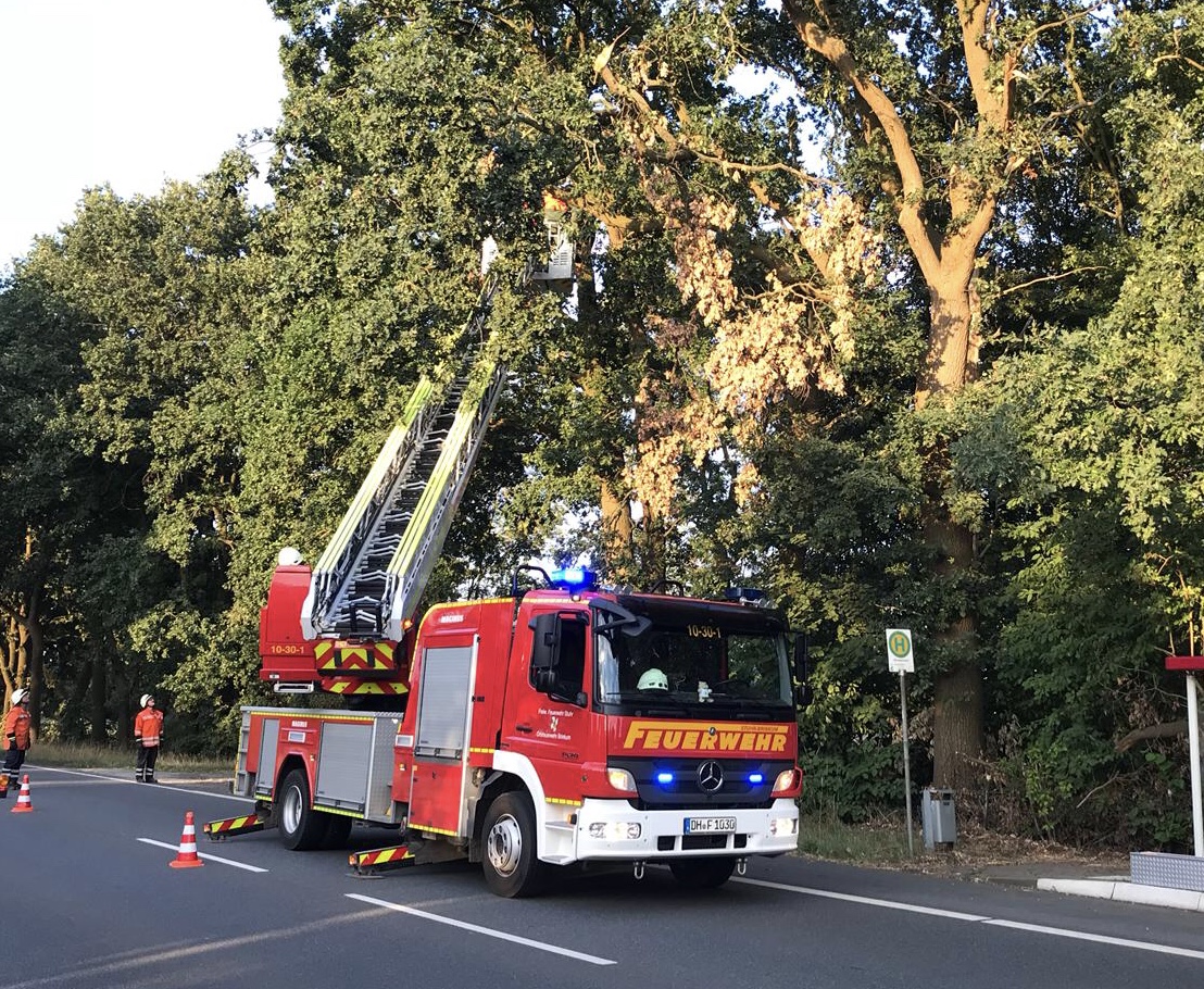 Seckenhausen-(cm). Am Freitagabend um 19:35 Uhr wurde die Feuerwehr Seckenhausen zu einer technischen Hilfeleistung auf die Bundesstraße 51 gerufen. In Höhe der Straße „Birkenkamp“, drohten zwei größere Äste aus einem Baum zu fallen. Für die Beseitigung wurde die Drehleiter aus Brinkum nachalarmiert. Über den Drehleiterkorb konnten die Äste dann mithilfe einer Kettensäge entfernt werden. Nach einer Stunde war der Einsatz wieder beendet. Die Bundesstraße 51 musste für den Einsatz halbseitig gesperrt werden.