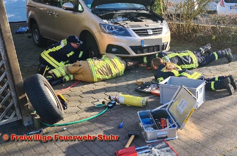Aus diesem Grund wählte sie den Notruf und die Feuerwehr Stuhr wurde zur Einsatzstelle geschickt. Da die Katze stark eingeklemmt war, mussten der rechte Vorderreifen sowie mehrere Teile im Motorraum abgebaut werden. Leider war die Katze so stark eingeklemmt, dass für sie jede Hilfe zu spät kam. Nachdem die Katze befreit war, wurde der Wagen wieder zusammengebaut. Der Einsatz der Feuerwehr war nach ca. 1,5 Stunden beendet.