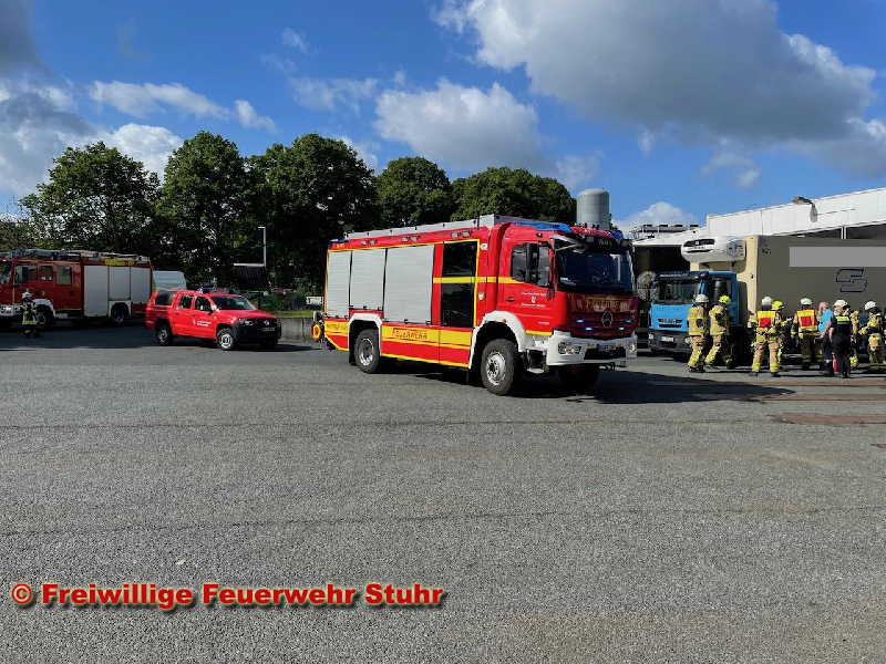 (ct) Heute morgen um 9:30 Uhr wurden die Feuerwehren Brinkum und Stuhr sowie der Einsatzleitwagen aus Fahrenhorst über Meldeempfänger zu einem LKW-Brand alarmiert. Einsatzort war der Anlieferungsbereich eines großen Verbrauchermarktes in Brinkum-Nord.
