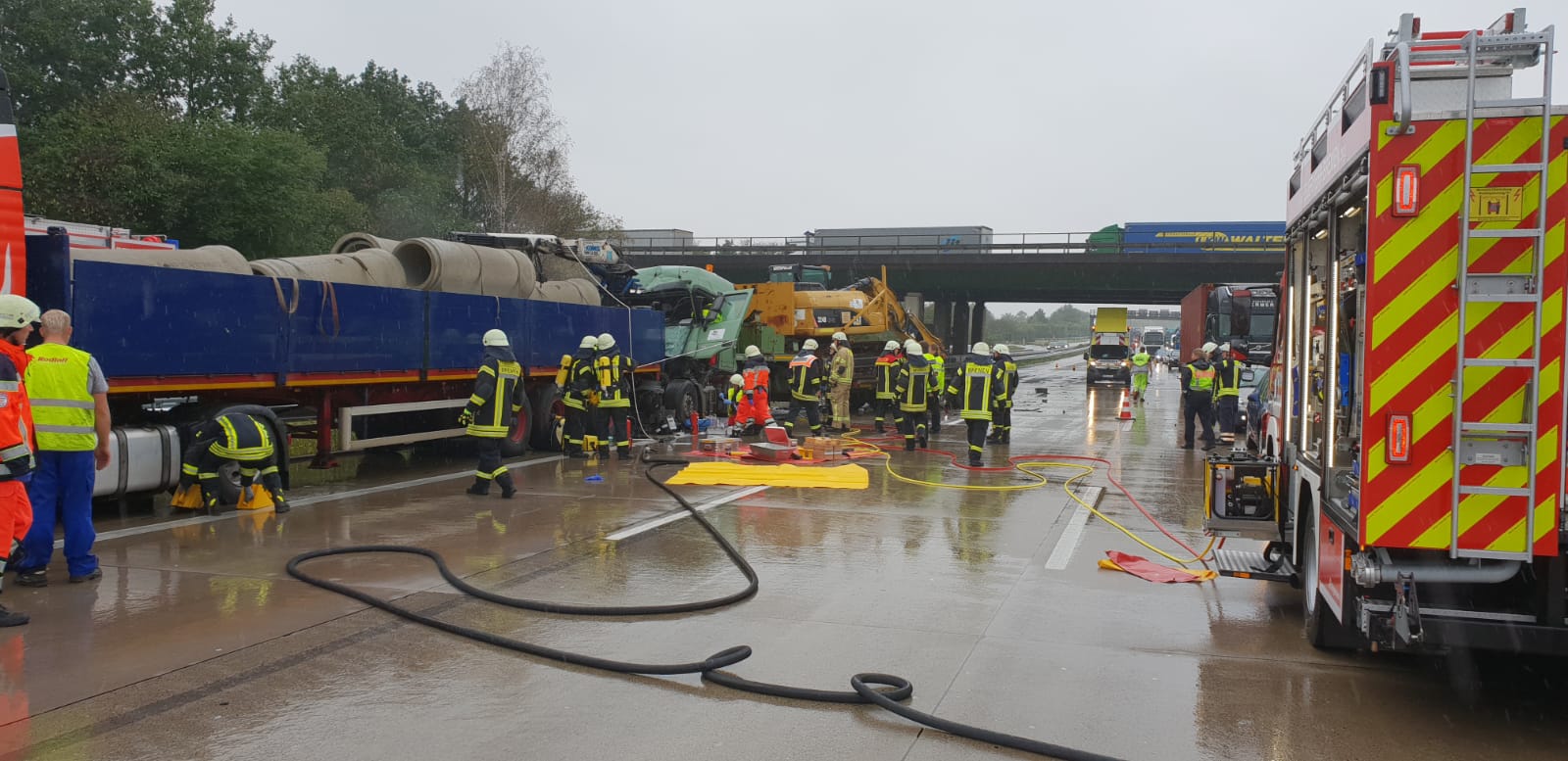 LKW-Unfall auf der Autobahn 1 – Fahrer eingeklemmt