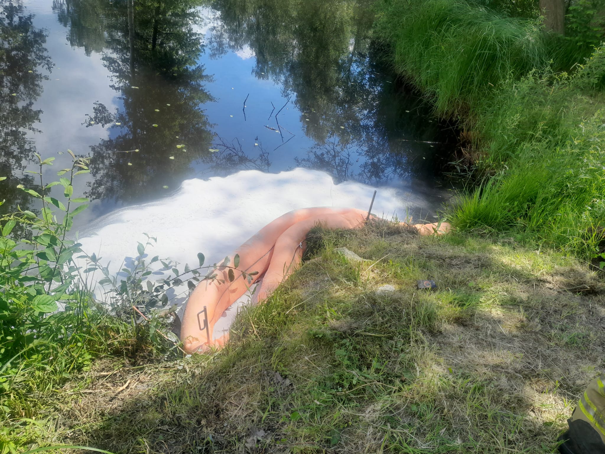 Eine aufmerksame Anwohnerin hatte bei der Leitstelle angerufen und einen Ölfilm auf der großen Wasserlöse hinter dem Schützenweg gemeldet. Die Leitstelle informierte den Ortsbrandmeister, der dann nach einer ersten Begutachtung der Lage die Feuerwehr Stuhr alarmieren liess.
