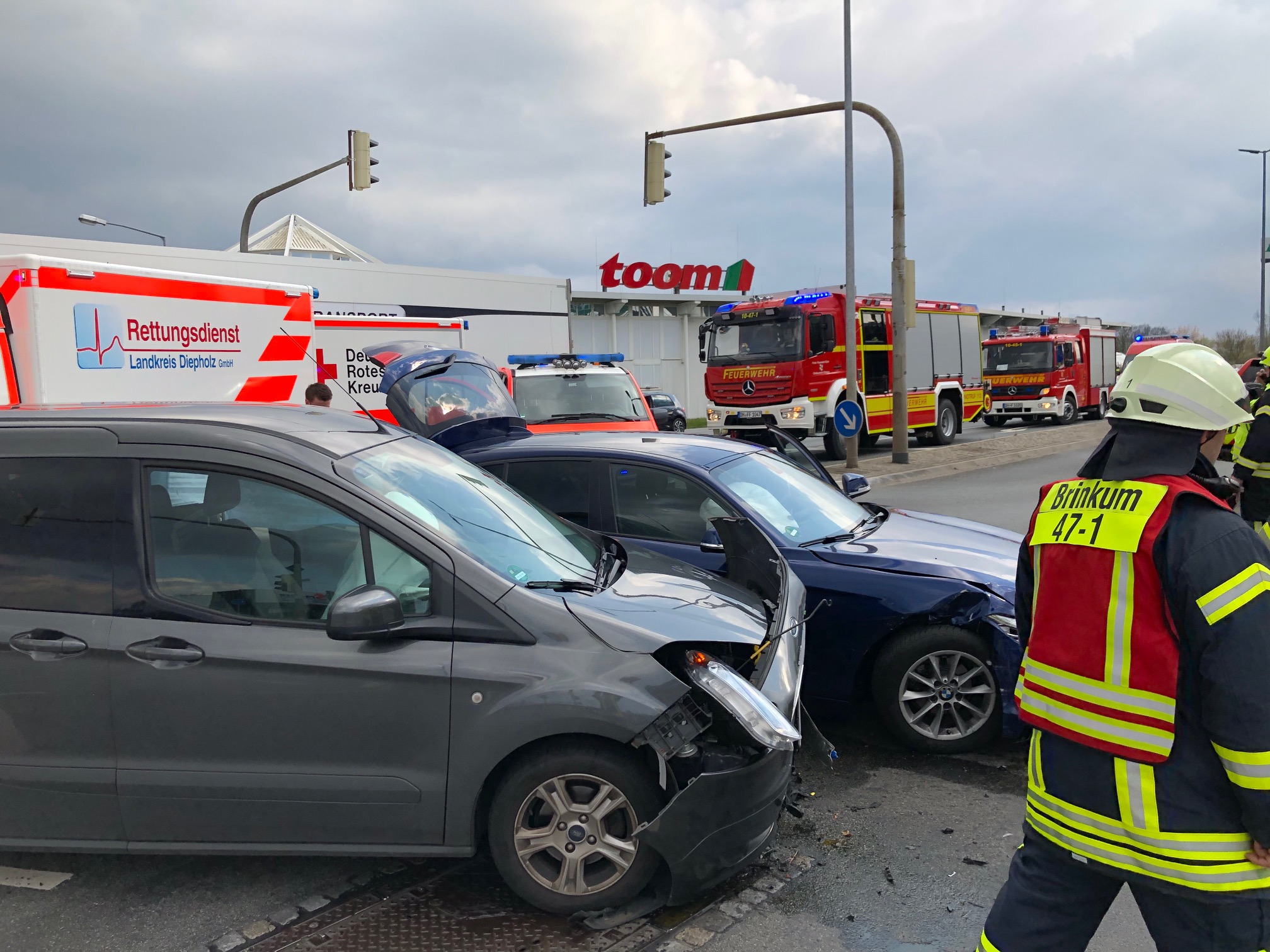 Brinkum. Am Samstagnachmittag um 16:02 Uhr wurde die Feuerwehr Brinkum zu einem Verkehrsunfall nach Brinkum-Nord gerufen. Im Kreuzungsbereich Bremer Straße / Carl-Zeiss-Straße, kam es zu einem Verkehrsunfall zwischen zwei PKW. Die Kräfte der Feuerwehr übernahmen das Binden von ausgelaufenen Betriebstoffen.Vier Fahrzeuginsassen mussten vor Ort rettungsdienstlich versorgt werden. Nach 45 Minuten war der Einsatz wieder beendet.