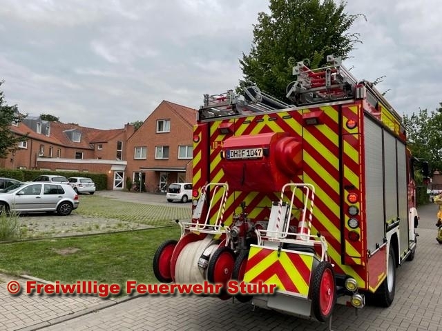 (ct) Heute morgen 5:58 Uhr wurde die Feuerwehr Stuhr über Sirene und Meldeempfänger alarmiert. In einem Mehrfamilienhaus in der Straße Am Rathaus in Stuhr piepte in einer Wohnung im zweiten Obergeschoß ein Rauchmelder. Aufmerksame Nachbarn haben dies bemerkt und versucht den Bewohner durch Klopfen zu wecken. Als er auch nicht über Handy erreichbar war, haben die Nachbarn den Notruf gewählt.