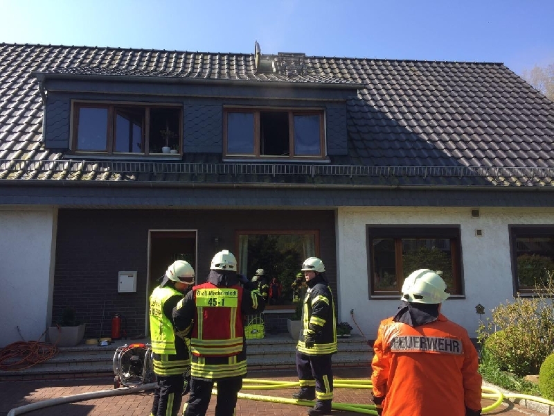 (ct) Heute um 10:07 Uhr wurden die Ortsfeuerwehren Heiligenrode und Gr.Mackenstedt über Sirene und Meldeempfänger in die Fanger Straße in Heiligenrode alarmiert. Hier hatten die Bewohner eines Zweifamilienhauses eine starke Rauchentwicklung bemerkt und den Notruf gewählt. Beim Eintreffen des ersten Fahrzeuges drang schwarzer Rauch aus dem 1.Stockwerk. Daraufhin wurde ein Angriffstrupp unter umluftunabhängigem Atemschutz zur Brandbekämpfung in das Gebäude geschickt. Aufgrund der starken Rauchentwicklung wurden weitere Atemschutzgeräteträger der Ortsfeuerwehr Stuhr alarmiert. Der Brandherd konnte in einer Küche lokalisiert und das Feuer schnell gelöscht werden. Zur Unterstützung und zur Durchführung von Nachlöscharbeiten kamen noch zwei weitere Trupps unter Atemschutz zum Einsatz. Durch die starke Rauchentwicklung ist die obere Etage vorerst unbewohnbar. Zur Kontrolle auf Brandnester wurde die Wärmebildkamera des Einsatzleitwagens aus Fahrenhorst eingesetzt. Im Anschluss an die Löscharbeiten wurde ein Hochdrucklüfter zur Entrauchung des Gebäudes aufgestellt.